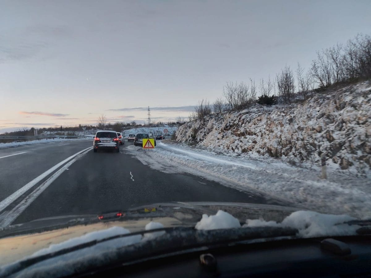 Očito je da noćas automobili nisu mogli ni naprijed ni natrag te su morali ostati na cesti.