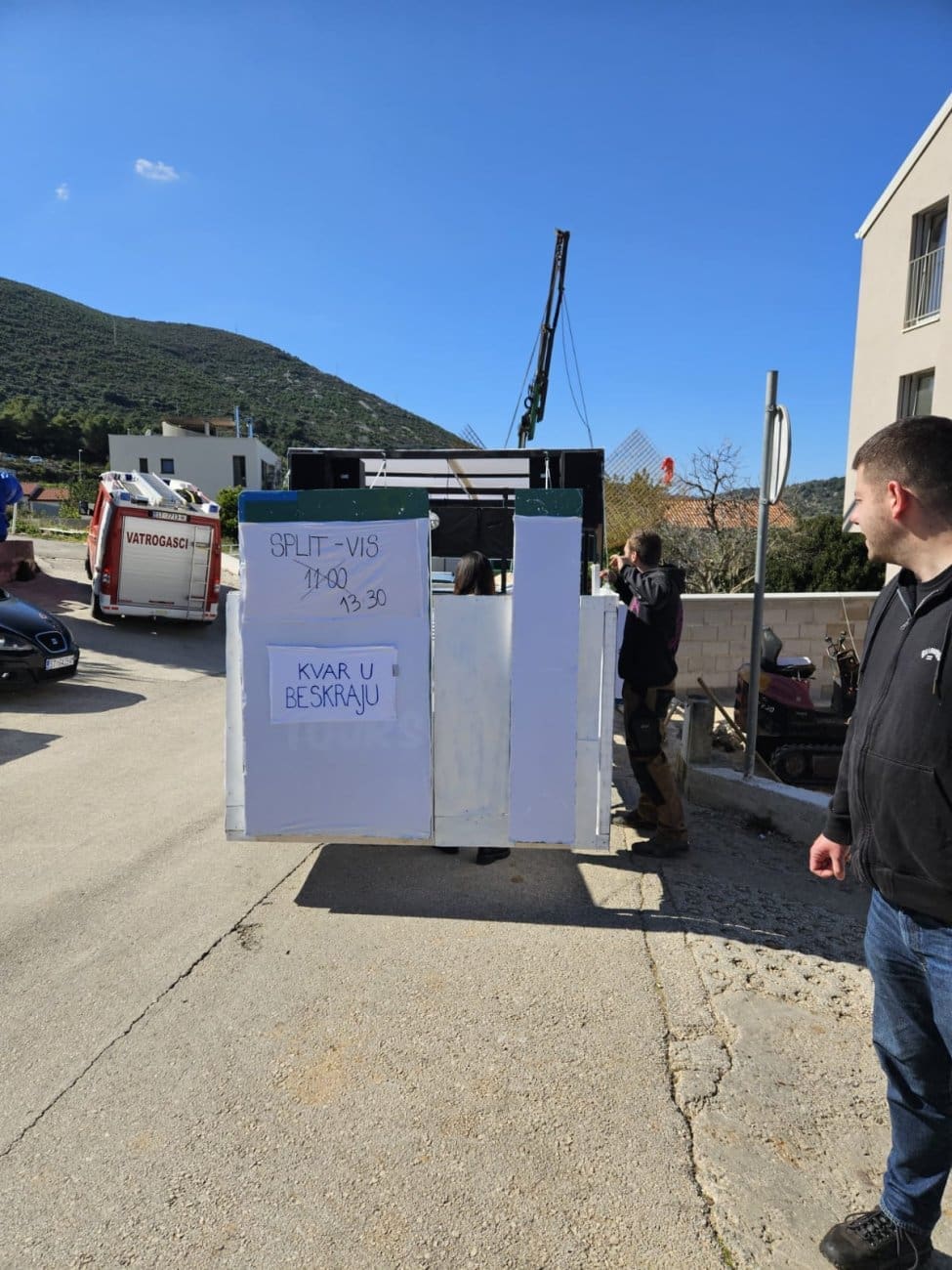 Naime, trajekt Jadrolinije, nazvan po legendarnom pjevaču Oliveru Dragojeviću, već je nekoliko puta doživio kvarove, a jednom je tijekom plovidbe čak zastao na otvorenom moru, ostavljajući putnike satima da čekaju pomoć. No, umjesto nezadovoljstva, Višani su sve okrenuli na šalu i odlučili "rekonstruirati" plovidbu broda – ali na kopnu.