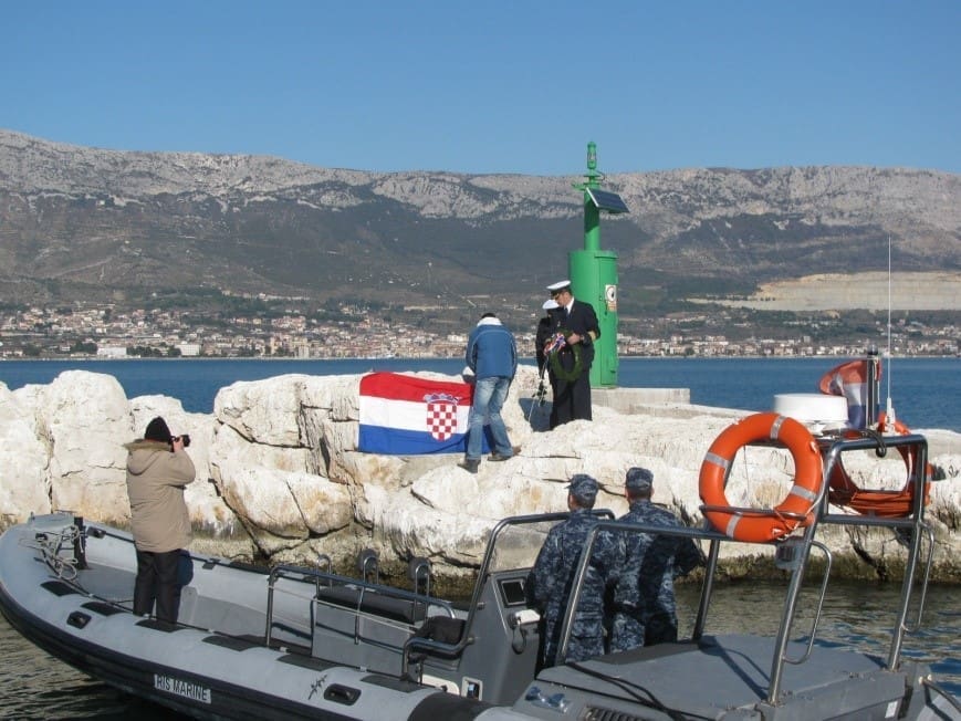 12:40 Isplovljenje vojnog broda do o. Školjića i polaganje vijenca na spomen ploču