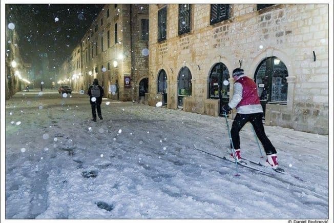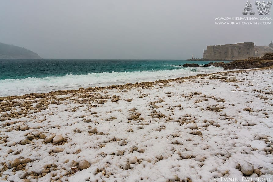 Kada se već činilo da će u južnoj Dalmaciji biti nedovoljno hladno za snijeg i da će padati samo kiša, ciklona je iznenadila i krajnji jug zemlje. Snijeg na našoj obali najrjeđe pada na dubrovačkom području, a upravo je Dubrovnik i okolica bio centar zimskog zbivanja u Dalmaciji. Jedna od najvećih snježnih oluja u znanoj povijesti pogodila je ovaj grad tijekom srijede, 18. veljače. U početku je bilo jačih grmljavinskih pljuskova kiše i susnježice, a s jačanjem bure temperatura je pala na -1°C pa je gotovo cijeli drugi dio dana na dubrovačkom području padao gust snijeg. Snijeg je zabijelio grad s više od 10cm te je izazvao potpuni prometni kolaps. Zbog obilnog snijega i olujnog vjetra dijelovi Dubrovnika bili su bez električne energije. Osim snijega, Dalmaciji je puhala i bura koja je mjestimično dosegla olujni prosjek uz orkanske udare. Dubrovnik je prekrilo 8 do 15 cm snijega, a u Konavoskim brdima ga ja u zapusima bilo preko pola metra!