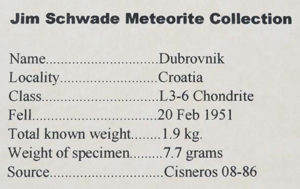 Na današnji dan, 20. veljače 1951. godine, kod mjesta Molunat, 40 km južno od Dubrovnika pao je meteorit težak 1,9 kg. Meteorit je dobio službeni naziv "Dubrovnik". (2) Gromada je pala u maslinik dok su krhotine završile u moru. Materijal tog meteorita, kasnije nazvanog "Dubrovnik", danas se čuva u Hrvatskom prirodoslovnom muzeju u Zagrebu.