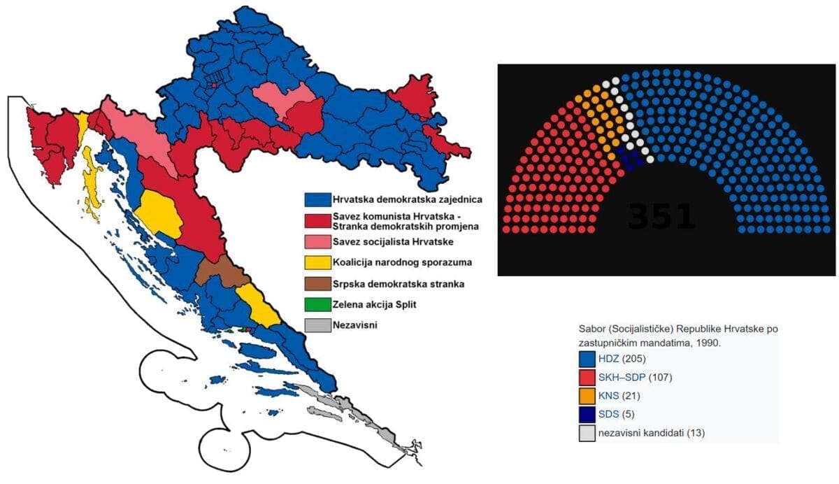 15. veljače 1990. godine, Sabor SR Hrvatske usvaja ustavne amandmane, kojim su legalizirani višestranački izbori i Zakon o izboru i opozivu odbornika i zastupnika, čime su ispunjene sve zakonske pretpostavke za održavanje izbora u Hrvatskoj (prvi krug glasanja 22. i 23. travnja, a drugi 6. i 7. svibnja 1990).