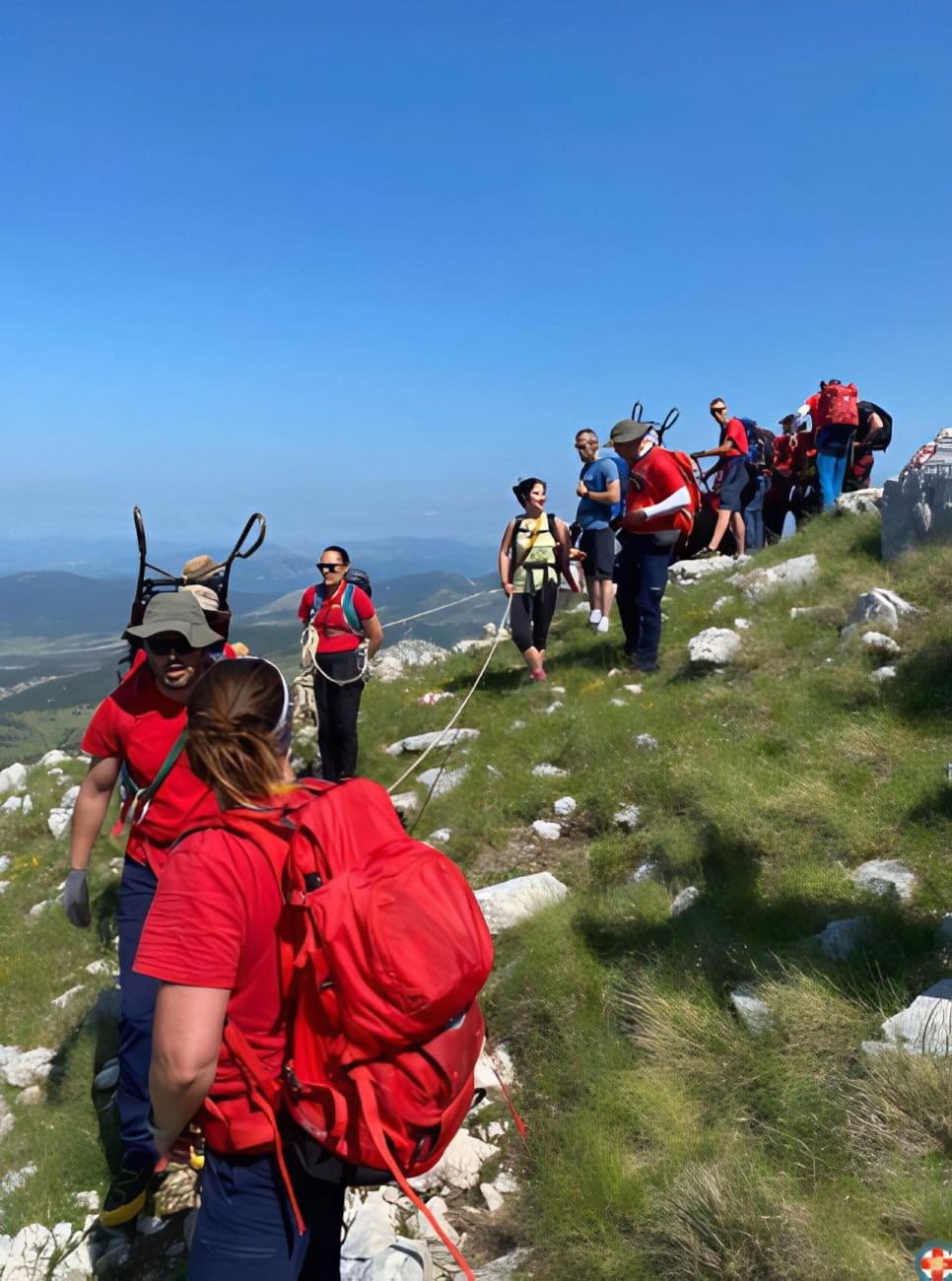 Čak pet HGSS stanica (Ogulin, Karlovac, Zadar, Split i Šibenik) u subotu, 7. lipnja, formiralo je ljudski lanac kojim su Slavena na specijalnoj nosiljci – popularnoj “marinerki” – dopratili od planinarskog doma Brezovac pa sve do vrha. Putem su im se pridružili planinari iz cijele Hrvatske, dok je Udruga osoba s invaliditetom “Sveti Bartolomej” iz Knina davala logističku podršku.