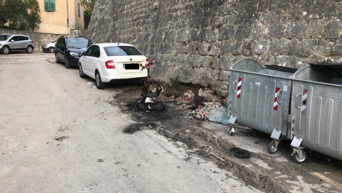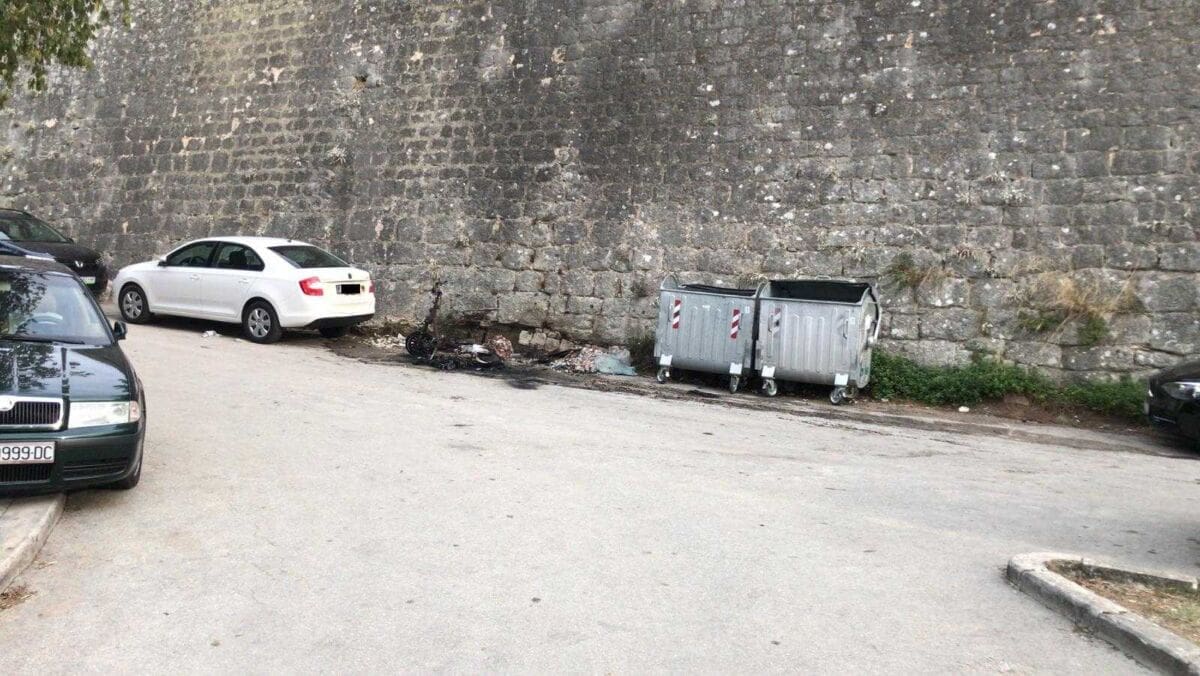 Vatrogasci splitske Javne vatrogasne postrojbe u 15 sati i 29 minuta izašli su na intervenciju nakon dojave o požaru električnog scutera zagrebačkih tablica kod trvđave Gripe.