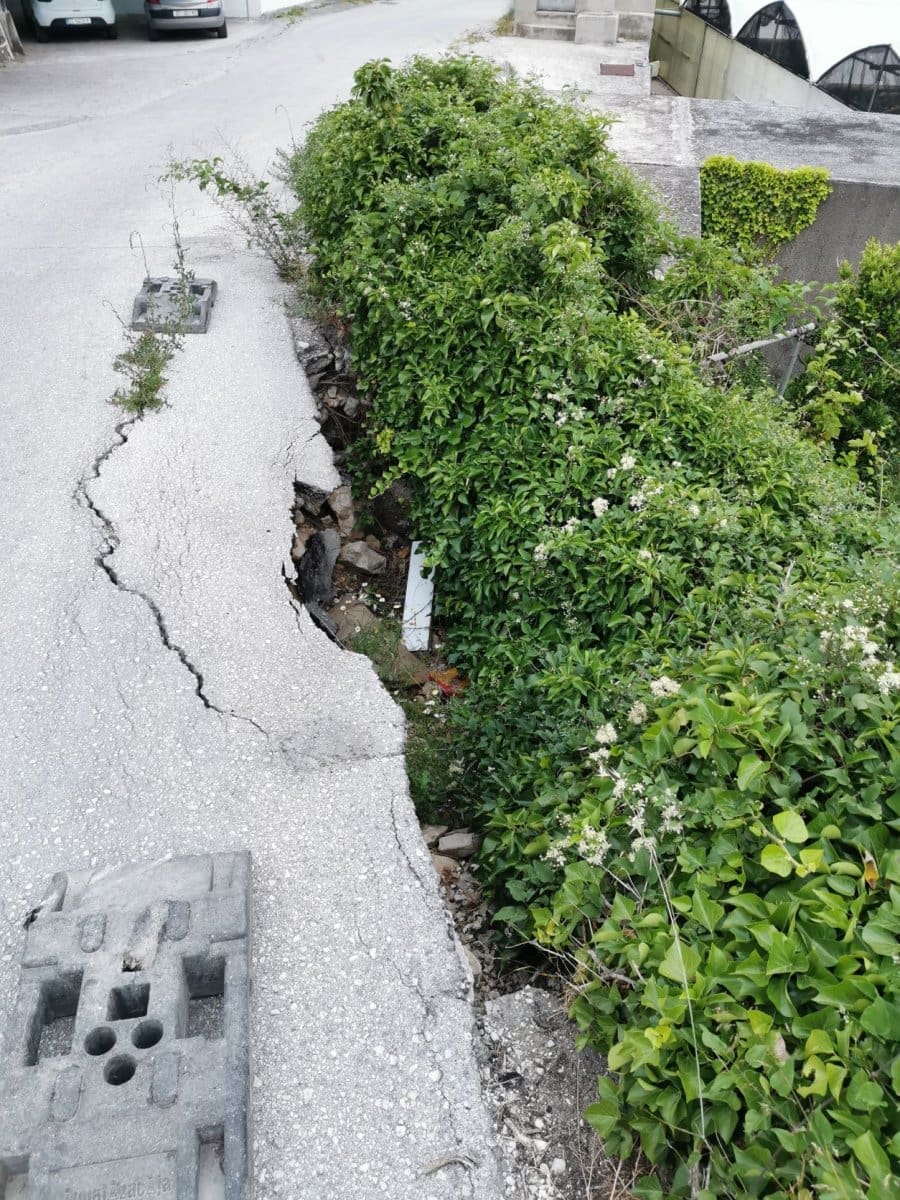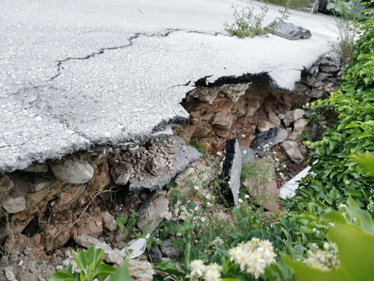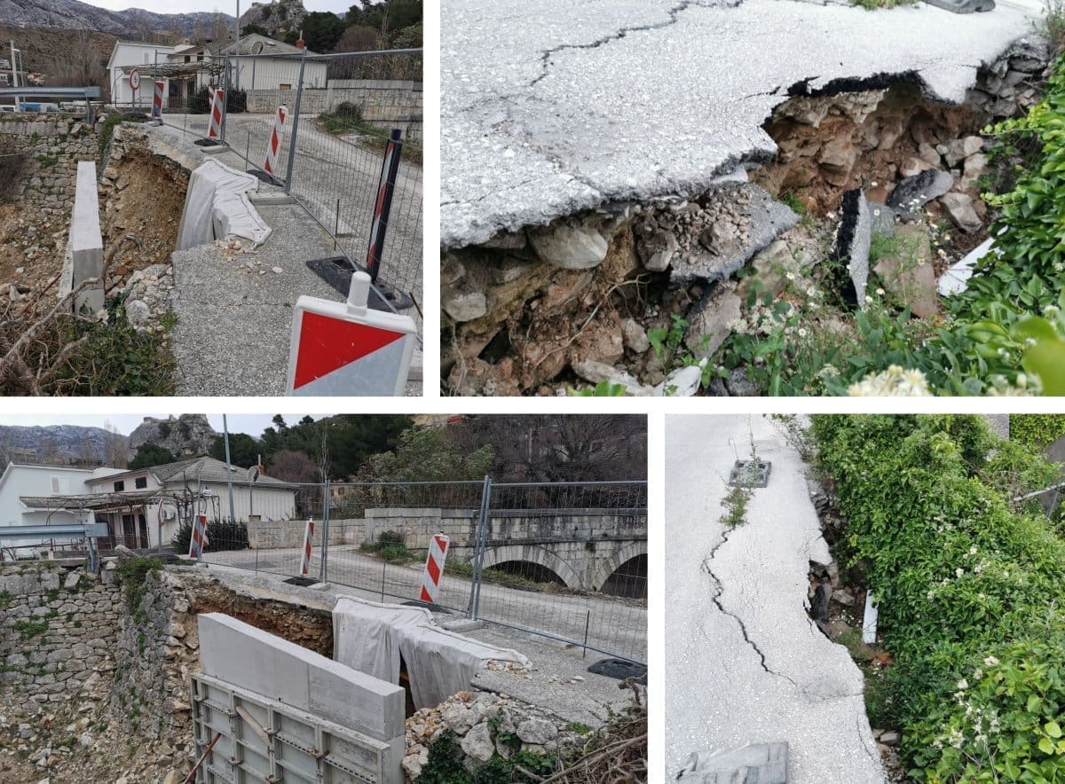 Prve dvije slike u prilogu su snimljene 14. lipnja 2020 godine gdje se već vidi urušeni dio ceste, odnosno urušenje potpornog zida.