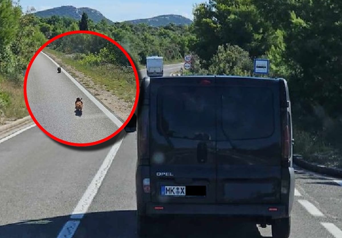Kako su objavili, iz kombija s njemačkim registracijskim oznakama na cestu su izbačena dva psa dok se kombi kretao Jadranskom magistralom.