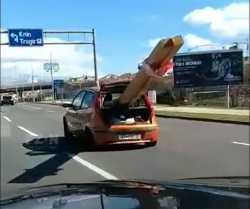 Popularna Facebook stranica "Prometne zgode i nezgode" objavila je video iz Ulice Domovinskog rata u Splitu gdje vozač Fiat Punta prevozi drvene stupove koji za nekoliko metara premašuju dužinu vozila.