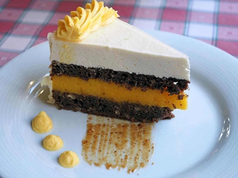 Način izrade: U posudu staviti 6 jaja i 200 g šećera. Miješati dok se ne sjedini. Samljeti 500 g naranče te u nju dodati jaja i šećer, zatim dodati sjeckane bademe, prašak za pecivo, brašno i kakao. Peći na 180 stupnjeva 40 minuta. Biskvit ohladiti pa prerezati na dva jednaka dijela. Mandarine samljeti u multipraktiku pa procijediti kroz sito. 800 ml soka od mandarine kuhati a ostatak pomiješati sa pudingom od vanilije, vanilin šećerom i šećerom.