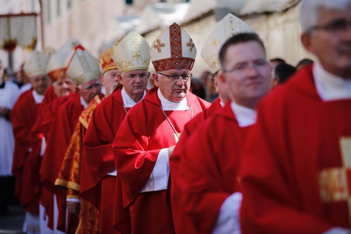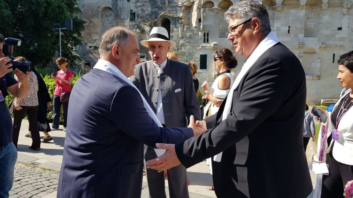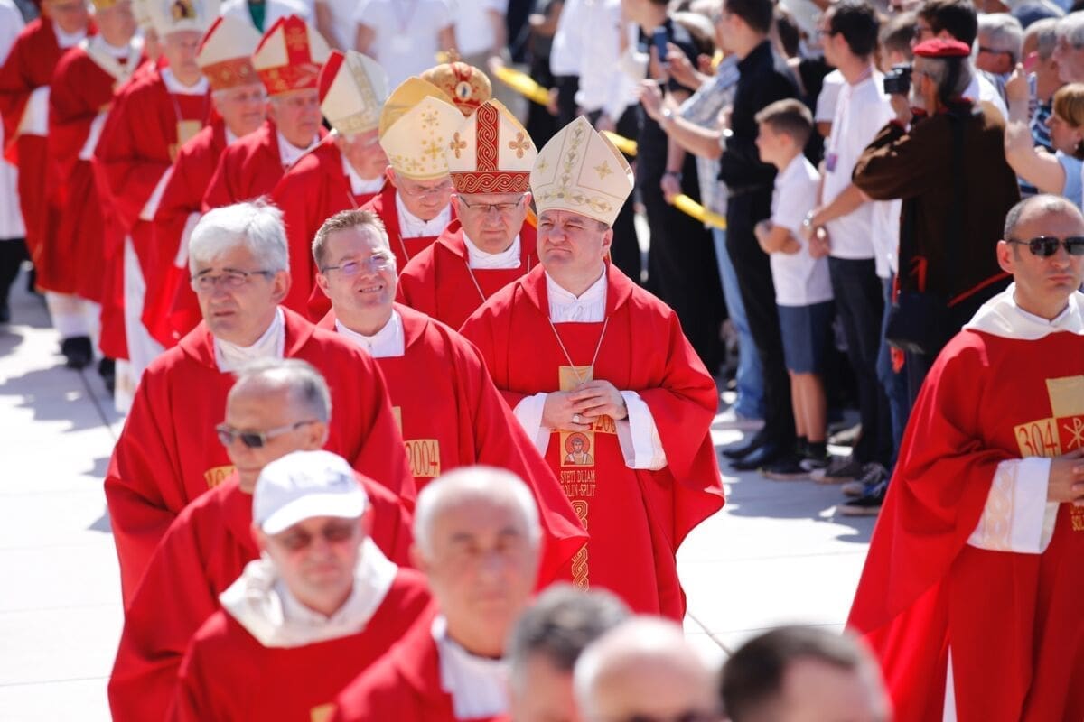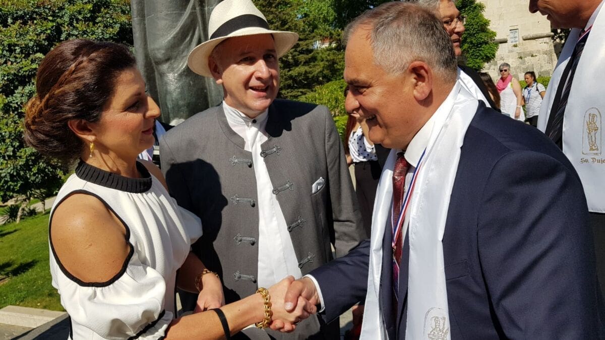 Njih su kod Đardina, prije odlaska na početak procesije s Peristila, dočekali gradonačelnik Andro Krstulović Opara sa suprugom, župan splitsko-dalmatinski Blaženko Boban te njihovi suradnici i drugi gradski i županijski dužnosnici.