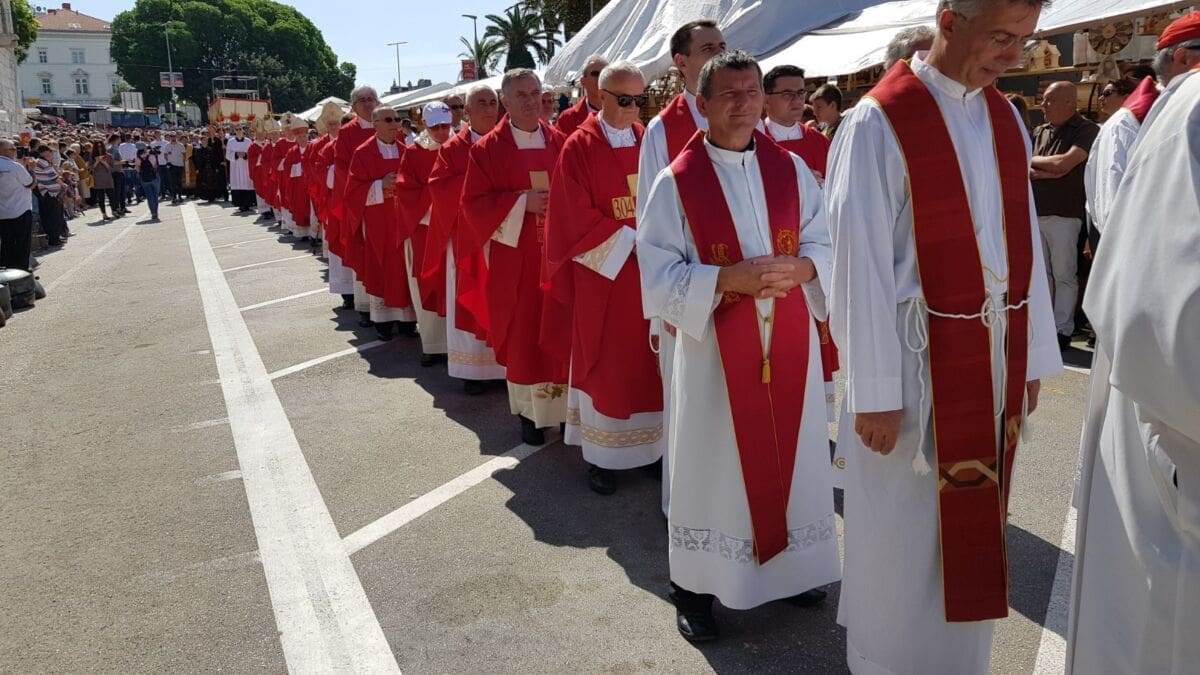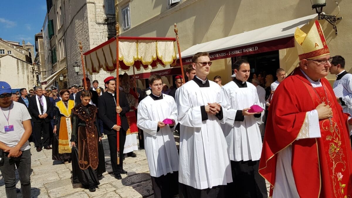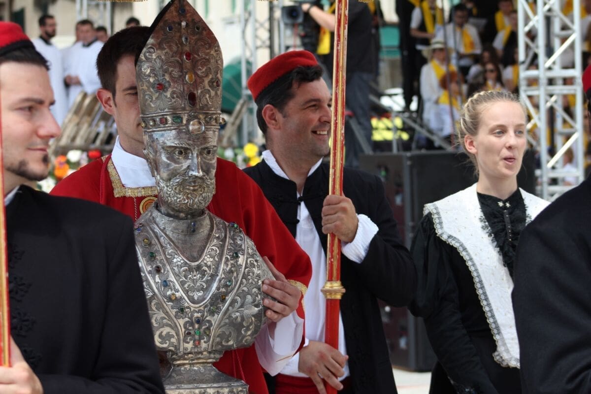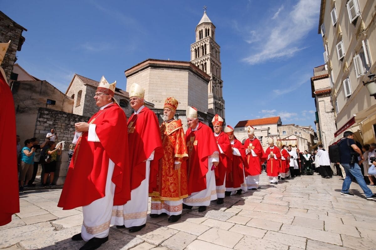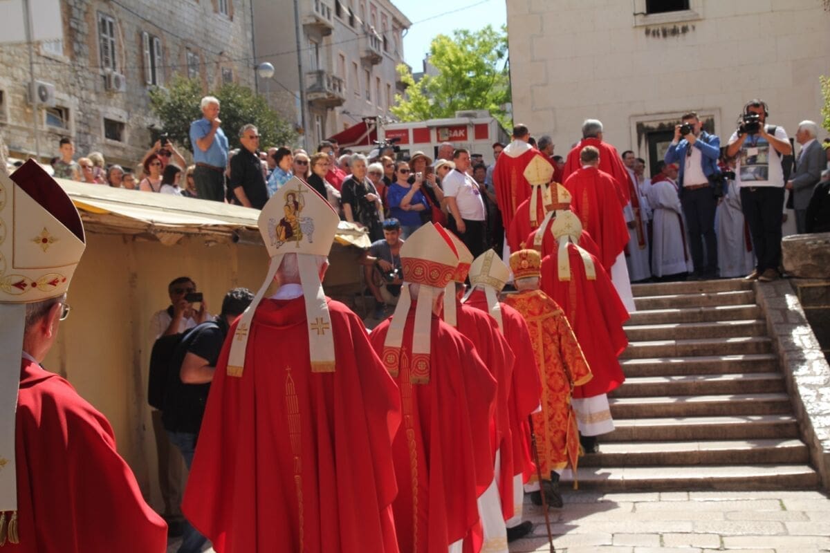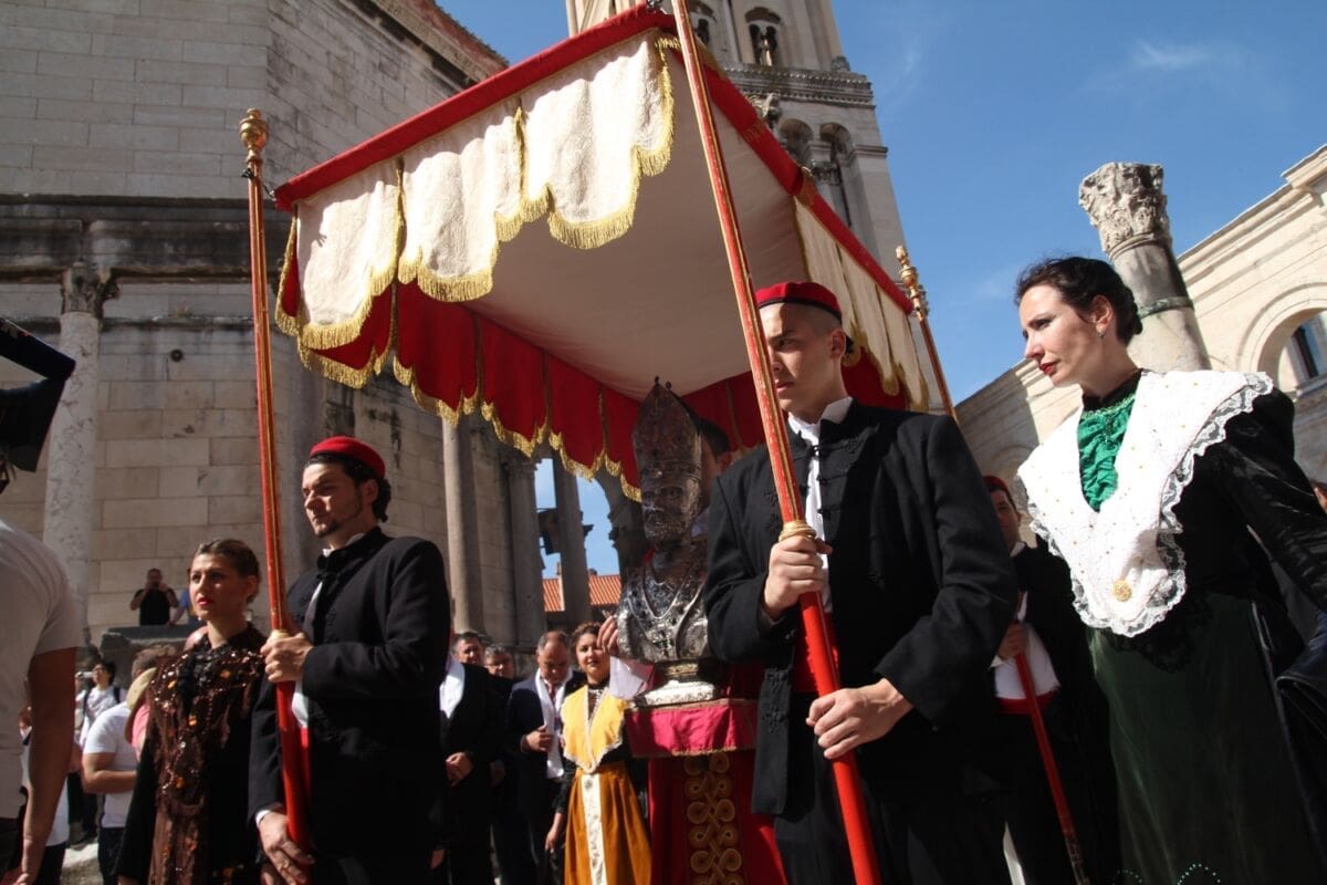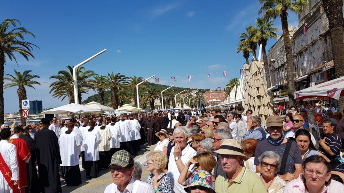 Procesija je krenula s Peristila u 10 sati predvođena nadbiskupom splitsko-makarskim Marinom Barišićem i šibenskim biskupom Tomislavom Rogićem te moćima svetog Duje, prenešenim sve do crkve Svetog Frane, gdje je održano misno slavlje koje je potrajalo do 12 sati.
