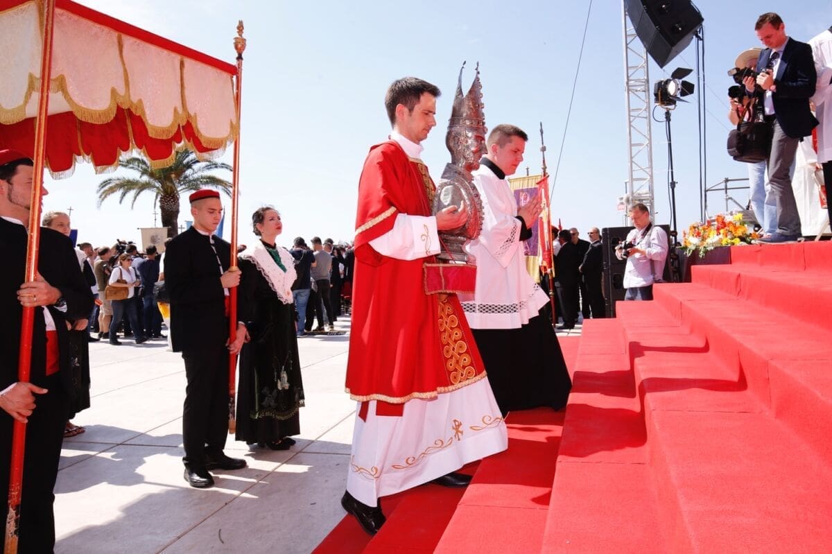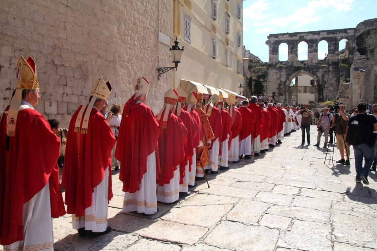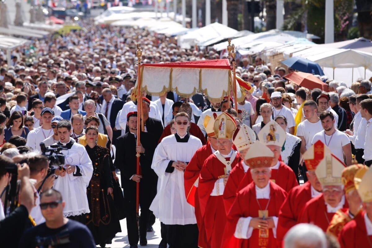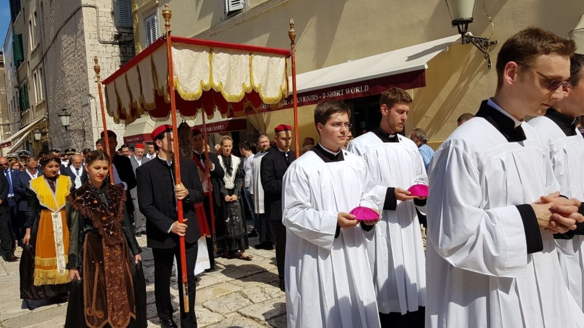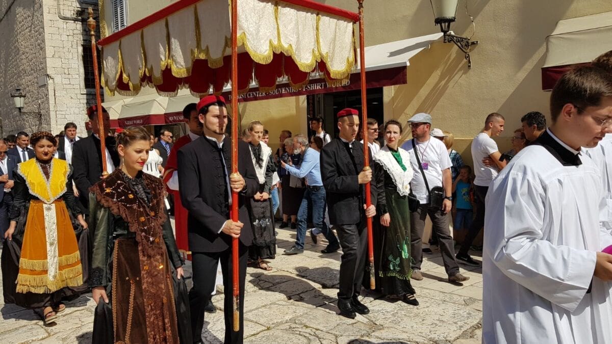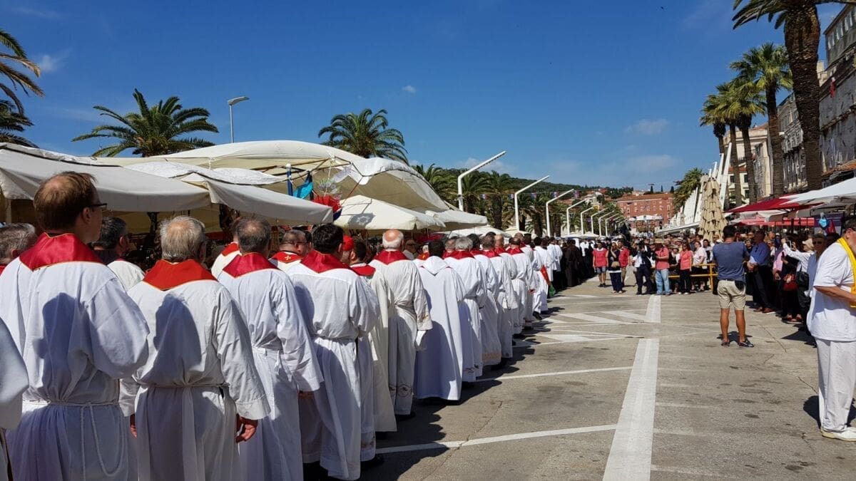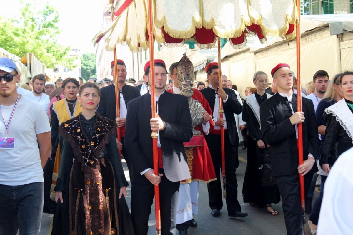 Procesija je krenula s Peristila u 10 sati predvođena nadbiskupom splitsko-makarskim Marinom Barišićem i šibenskim biskupom Tomislavom Rogićem te moćima svetog Duje, prenešenim sve do crkve Svetog Frane, gdje je održano misno slavlje koje je potrajalo do 12 sati.