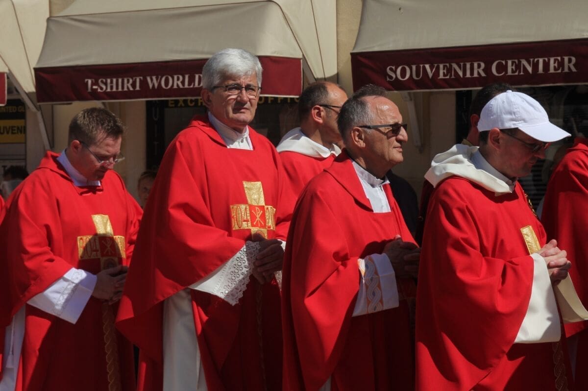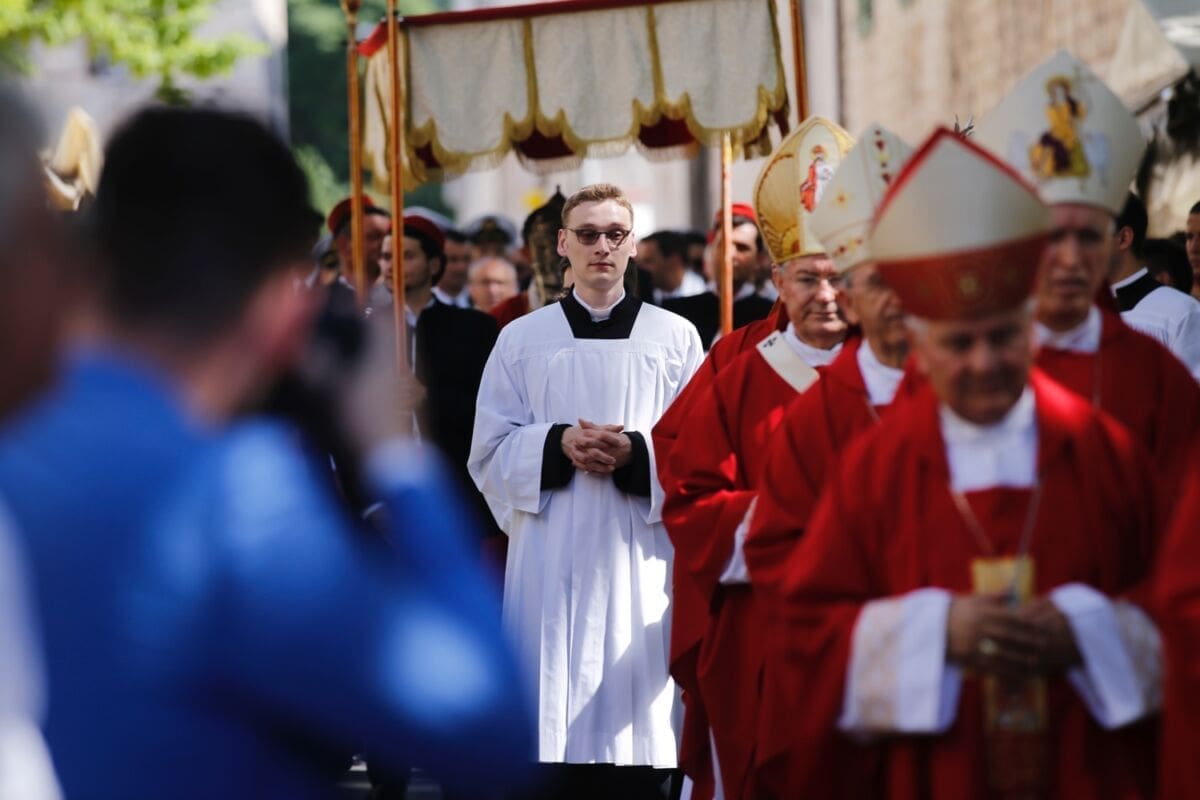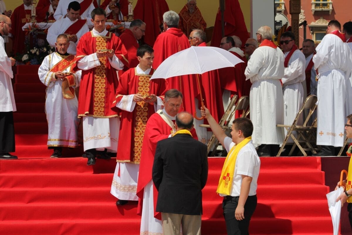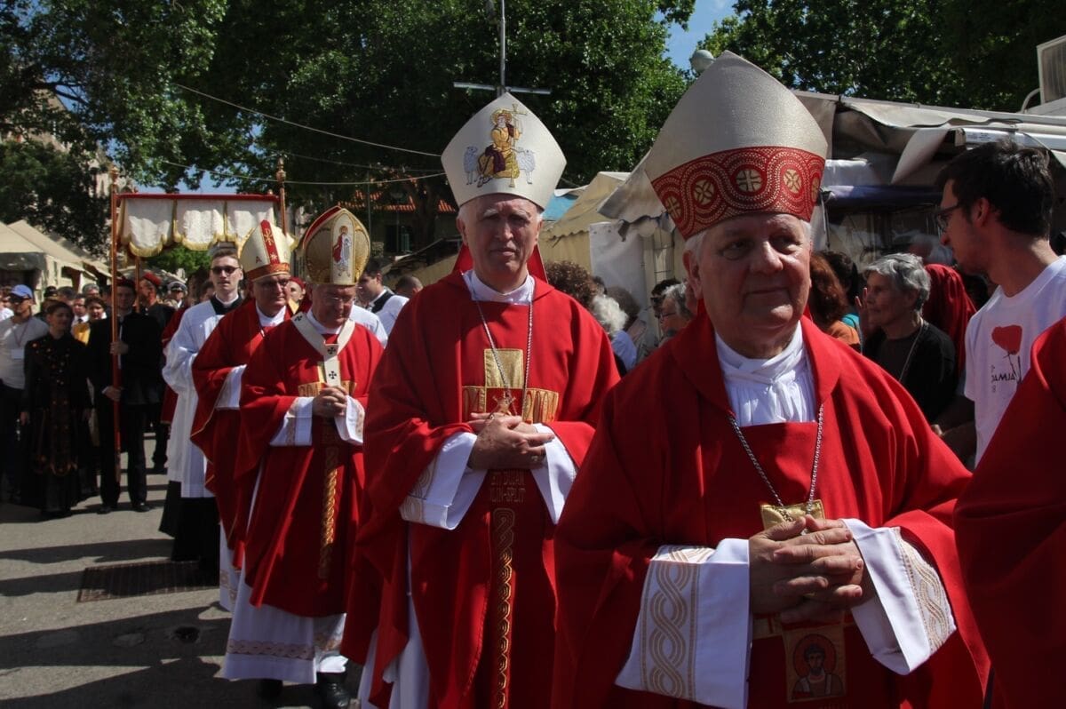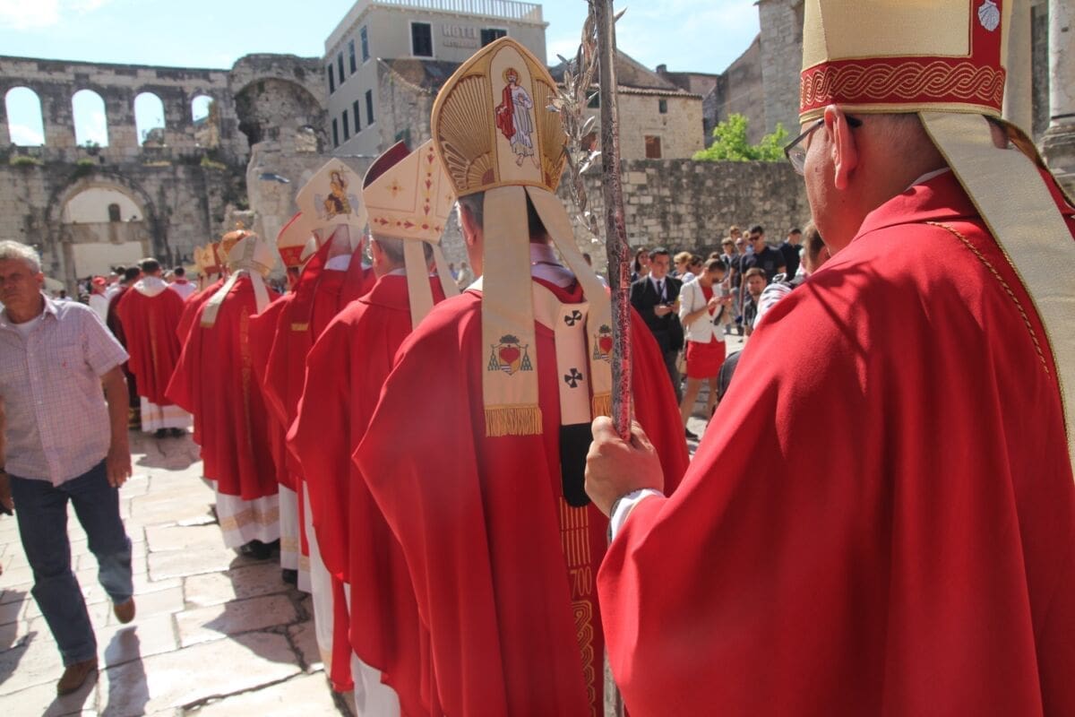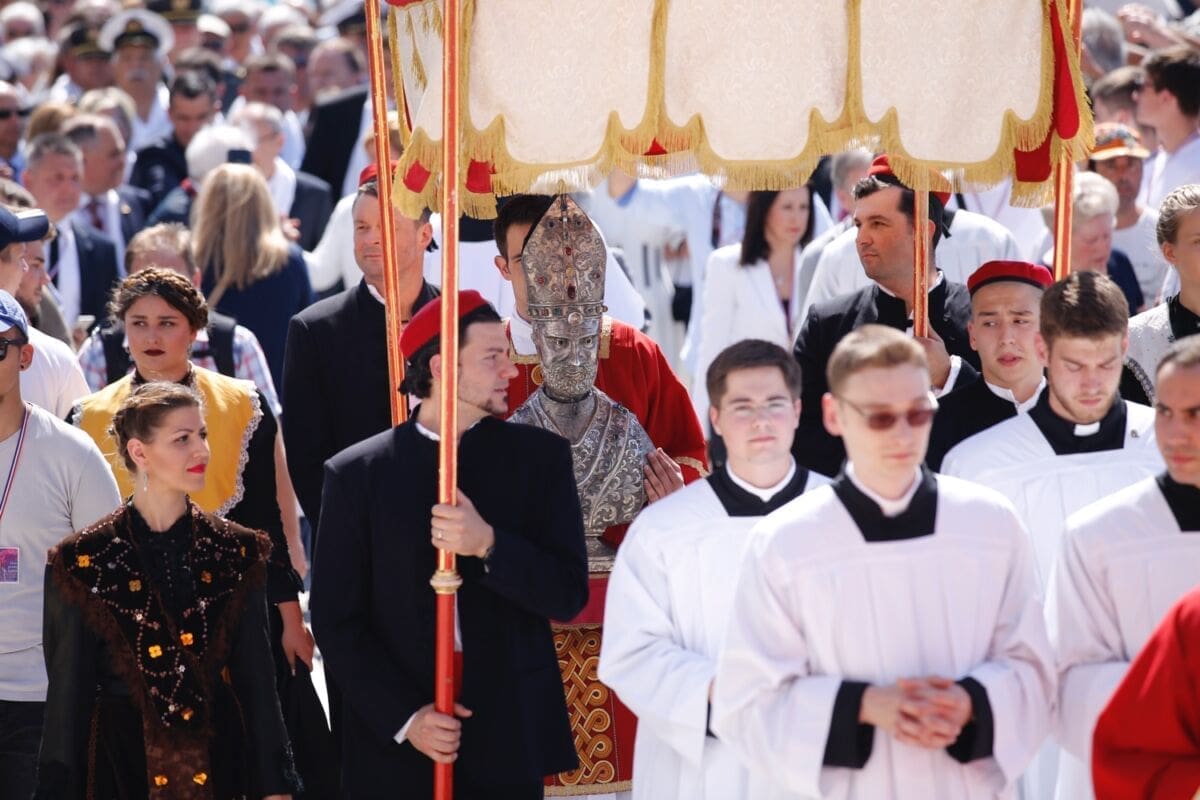Procesija je krenula s Peristila u 10 sati predvođena nadbiskupom splitsko-makarskim Marinom Barišićem i šibenskim biskupom Tomislavom Rogićem te moćima svetog Duje, prenešenim sve do crkve Svetog Frane, gdje je održano misno slavlje koje je potrajalo do 12 sati.