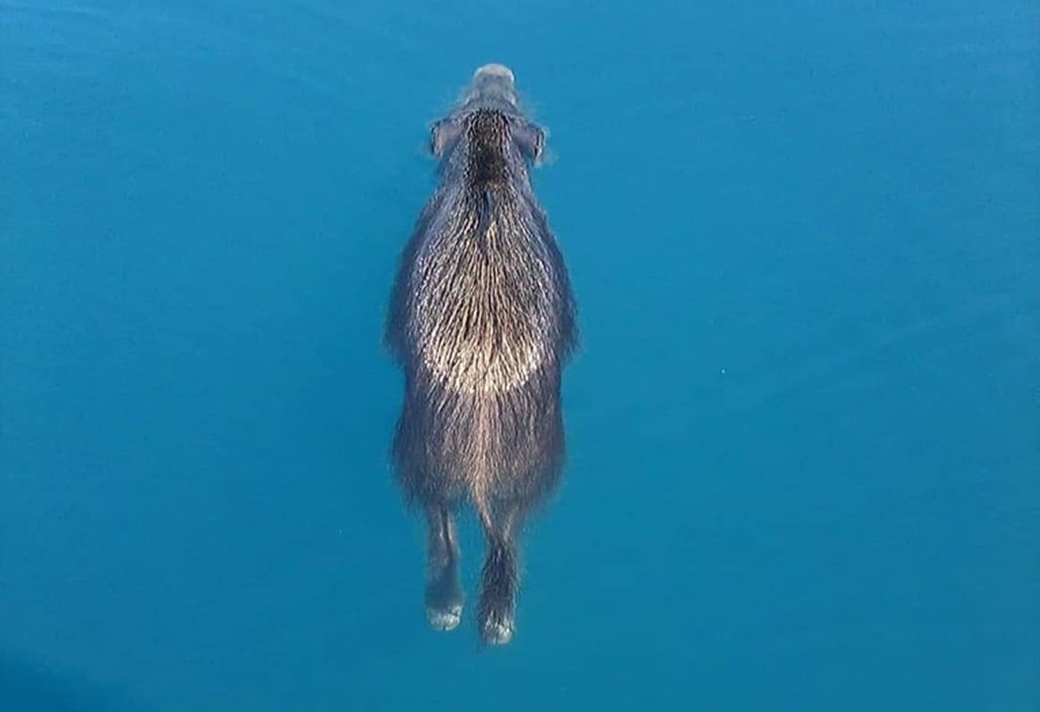 Zanimljiv prizor danas je snimljen u Pelješkom kanalu. Divlja svinja je bezbrižno plivala s Pelješca prema Korčuli.