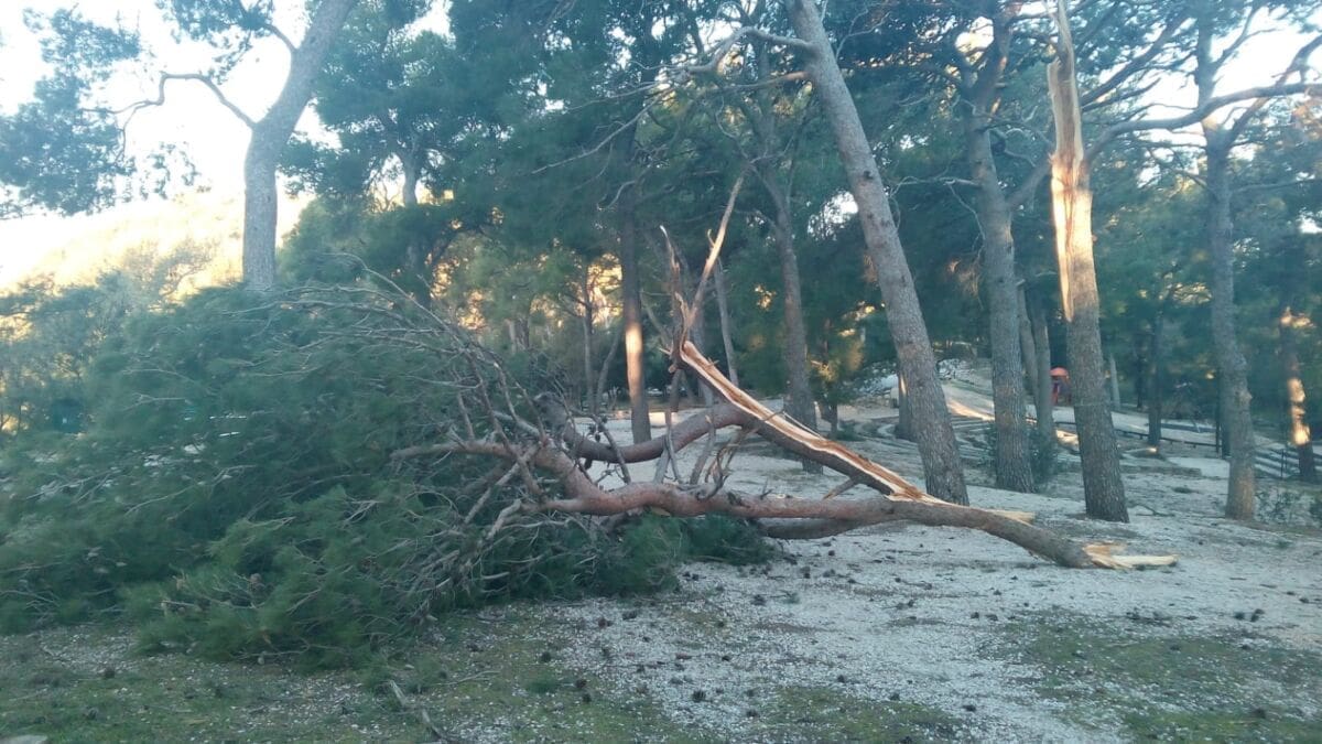 Prosjek vjetra u tim trenucima je bio orkanskih 118 km/h (33 m/s). Bura je na Marjanu srušila brojna stabla i lomila ih kao grančice čemu svjedoče i prizori u blizini bivšeg zoološkog vrta.