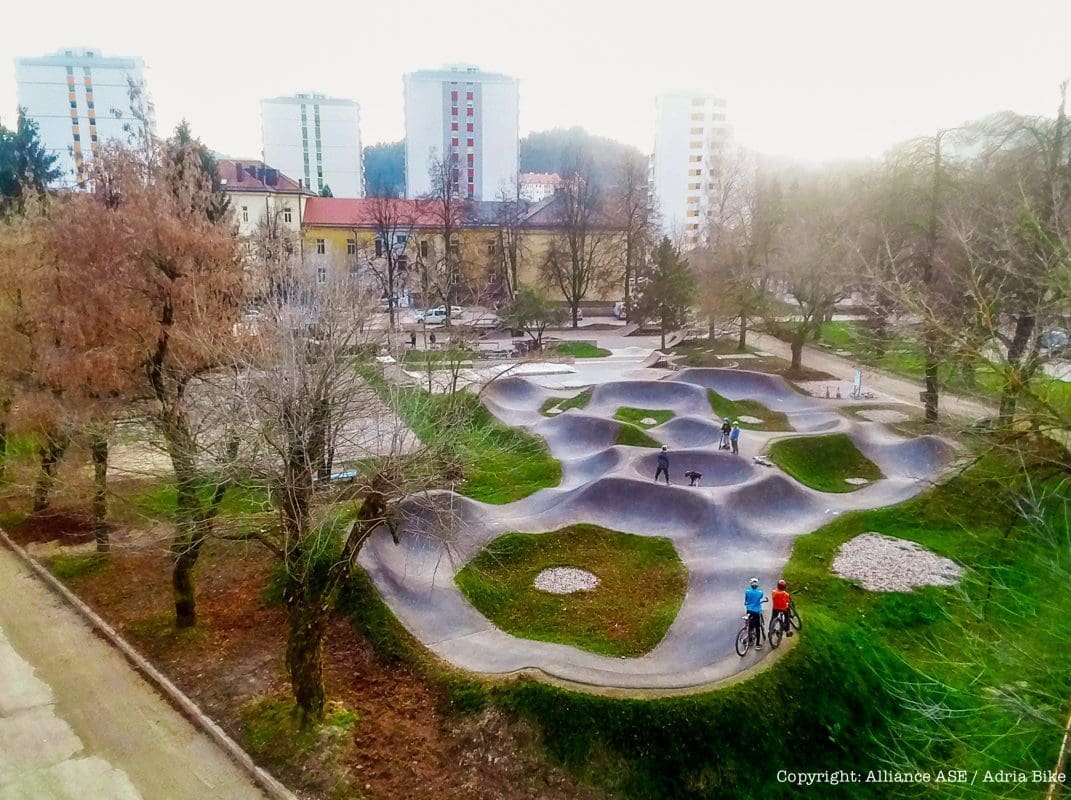 Idejno rješenje pump track poligona napravili su u suradnji s partnerom Alliance ASE iz Slovenije, te je poligon pogodan za sve veličine bicikala, romobila, skateboardova i koturaljki.