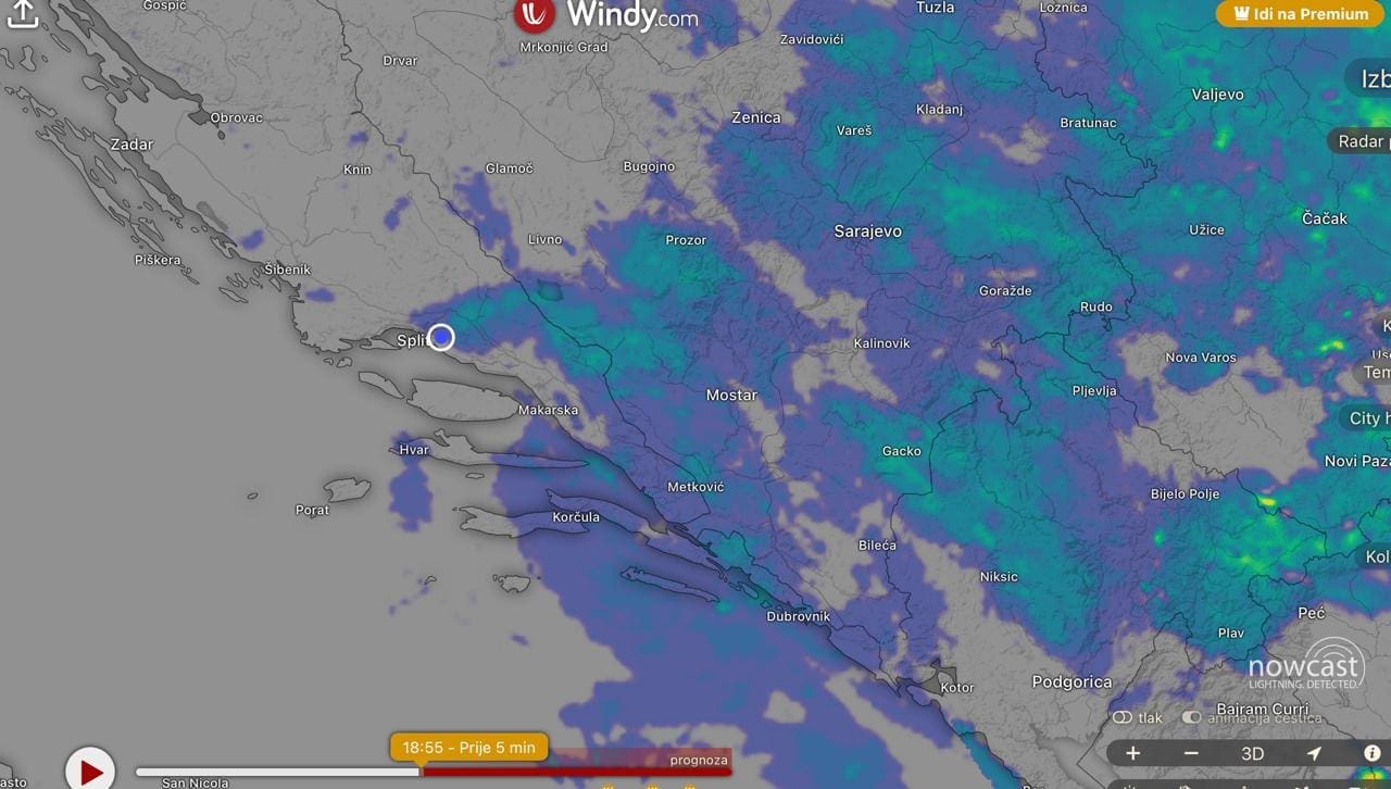 Kasno popodne došlo je do jačeg naoblačenje s istoka, a slabe oborine prvo su zahvatile dio srednje i južne Dalmacije. Radi se o vrlo slabim oborinama koje većina prognostičkih modela nije predvidjela, stoga predstavljaju iznenađenje. U večernjim satima slab snijeg počeo je padati u višim dijelovima Mosora i Biokova, temperatura zraka na Velikom Kablu na Mosoru u 19 sati iznosila je -1 uz slabe oborine.