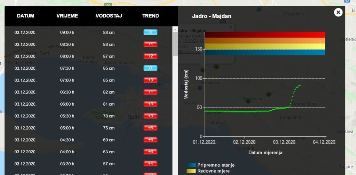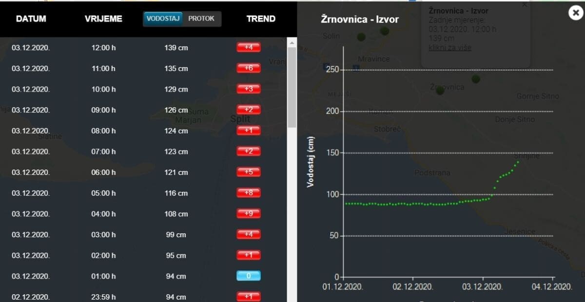 Naglo raste vodostaj rječice Žrnovnice, ali i Jadra, Cetine...