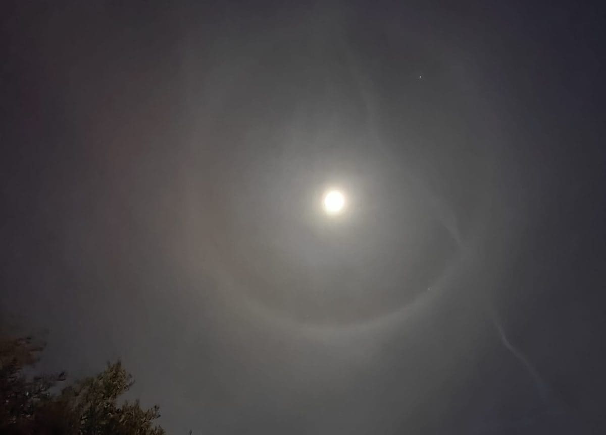 Prije jačeg naoblačenje, na nebu iznad srednje Dalmacije stigla je visoka koprenasta naoblaka, a ovi oblaci se po meteorološkoj klasifikaciji oblaka nazivaju cirostratusi. U zimskim noćim nije rijedak slučaj da se oko Mjesec pojavi kružnica koja nastaje kao posljedica loma svjetlosti na kristalićima leda spomenutih oblaka. Radi se o "halu" oko Mjeseca koji u ovom slučaju nagovještava vrlo skoru, ali prilično skromnu i prolaznu promjenu vremena.