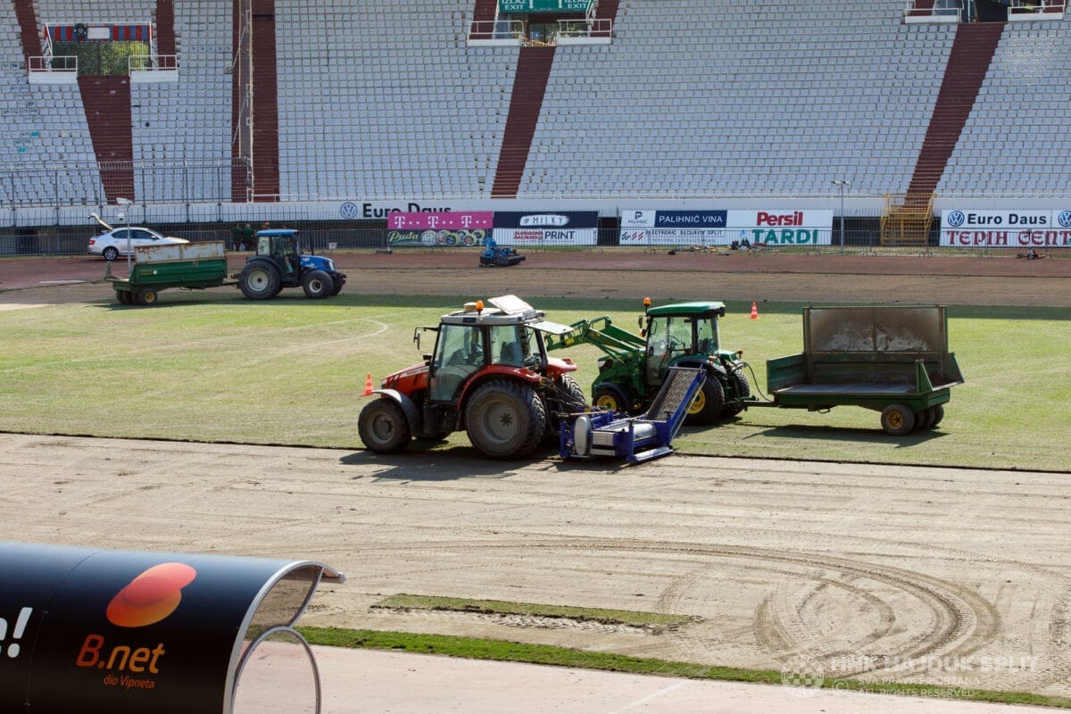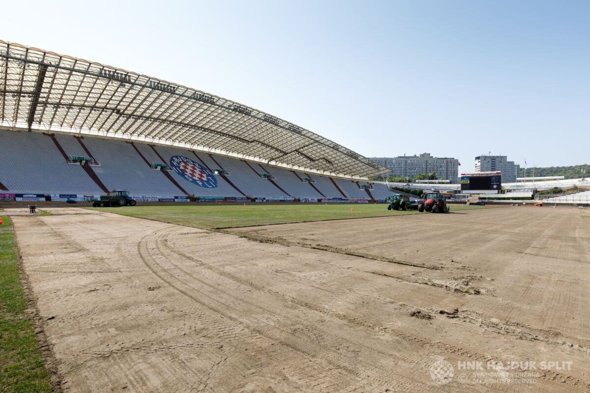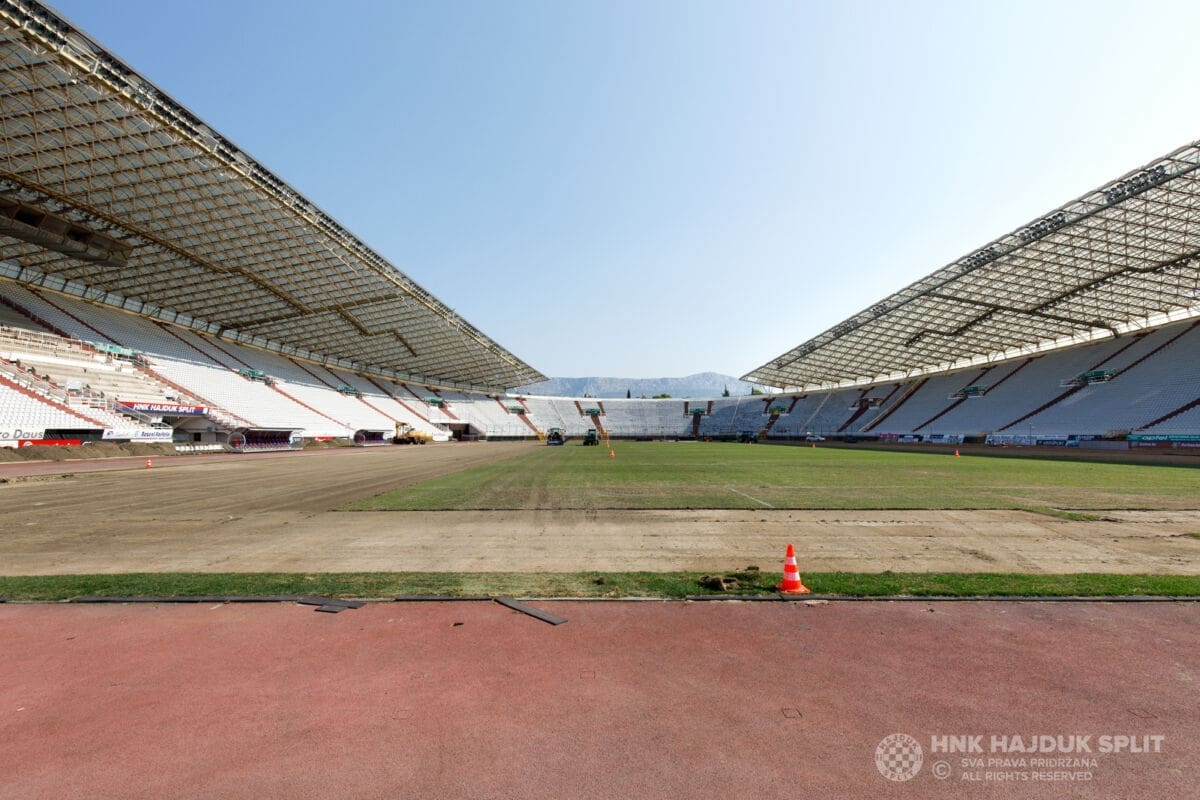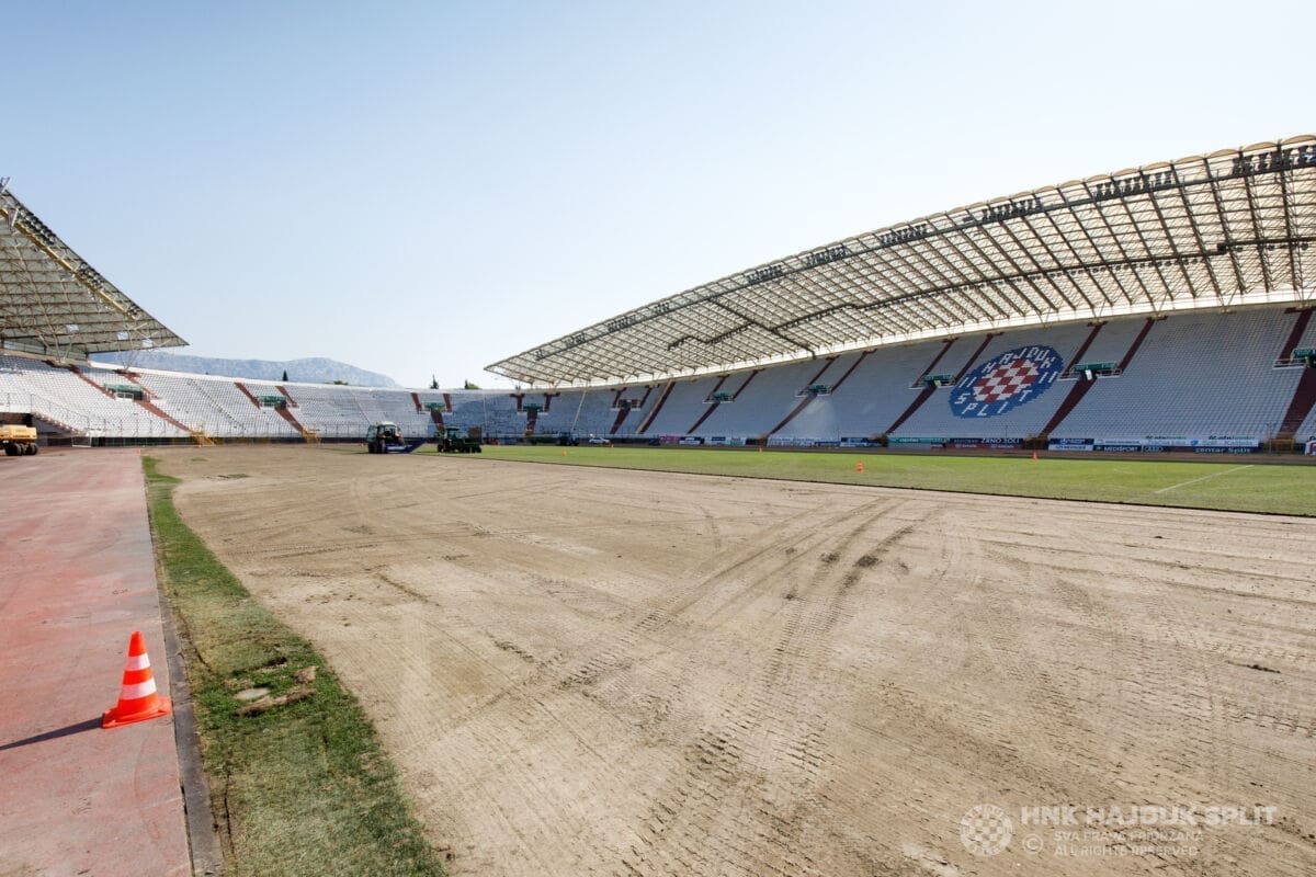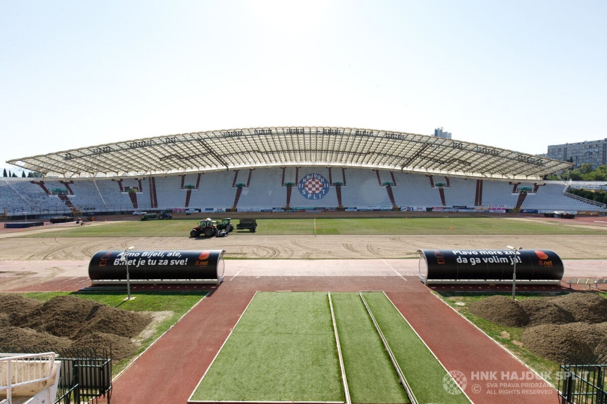Radovi bi trebali trajati otprilike dva tjedna, što znači da će travnjak biti spreman i funkcionalan do prve sljedeće utakmice na domaćem terenu u kojoj će Hajduk 15. rujna dočekati momčad Rudeša.