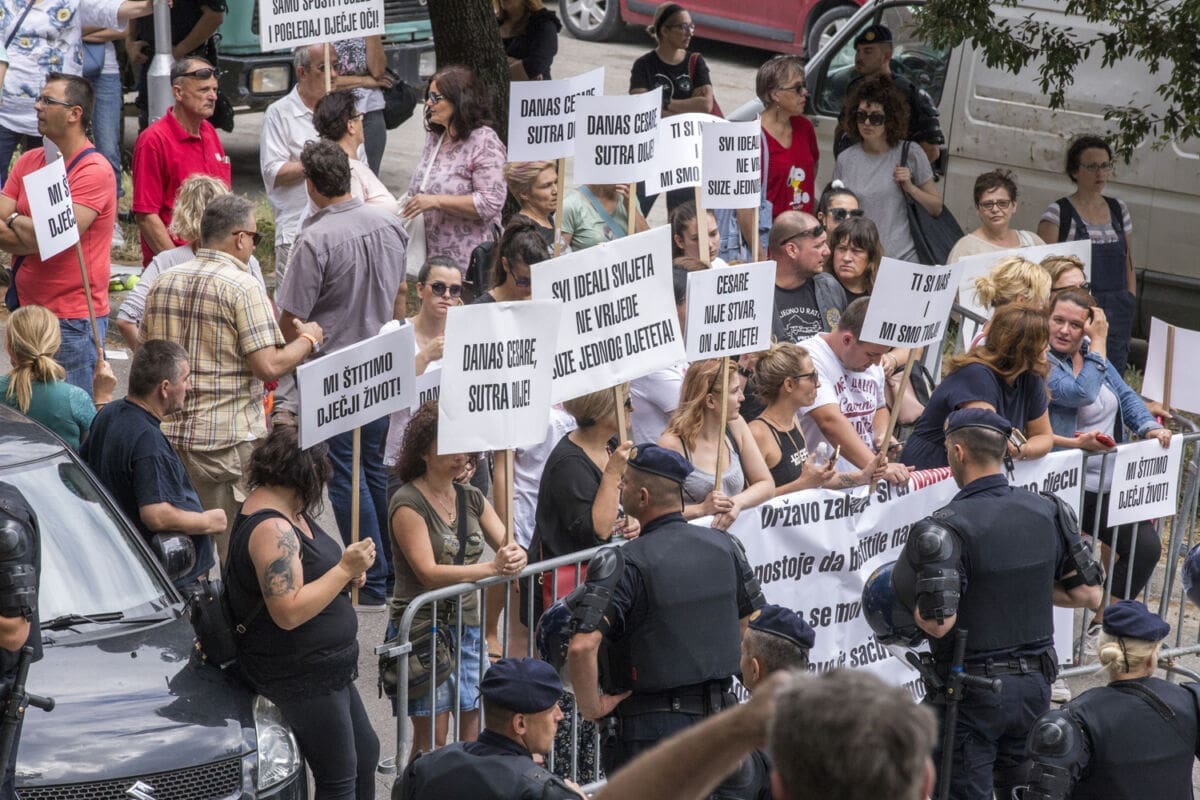 Za danas je zakazana ovrha nad 9-godišnjim Cesareom kojeg bi se trebalo oduzeti od majke Nine Kuluz i predati ocu Alessandru Avenattiju u Italiju. Nakon dvije propale ovrhe ovog puta institucije su pripremile teren da dijete predaju ocu, pa su tako oko zgrade jake policijske snage napravile prsten i spriječile prosvjednike da se približe zgradi.