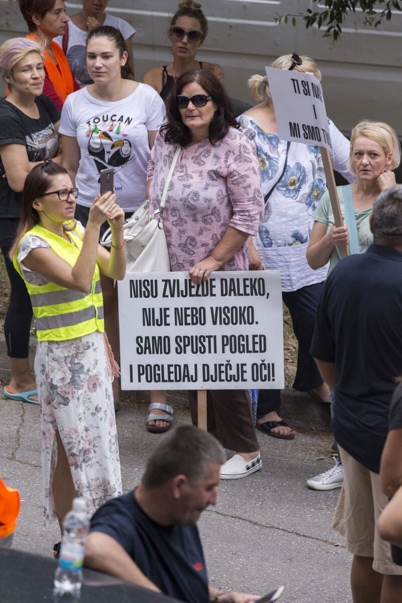 - Koliko policije na jedno malo dijete. Nije mi jasno kako mogu ovo raditi oni koji sami imaju djecu. Činjenica je da taj otac ne želi biti otac, s dječakom je proveo samo četiri dana, on želi da mu se dijete isporuči kao paket, a ne da je on živo biće koje ima osjećaje. Nina danas poslijepodne mora u Italiju. Ovo je prestrašno, ne mogu niti zamisliti da bi netko mogao otrgnuti dijete iz majčinog zagrljaja. Cijelu noć nije spavao, strašno. Mogu jedino apelirati na sutkinju i liječnika da ne naprave ovom djetetu oni što ne bi napravili svom - kazala je obiteljska prijateljica Anđela Šustić danas iz grupe prosvjednika.
