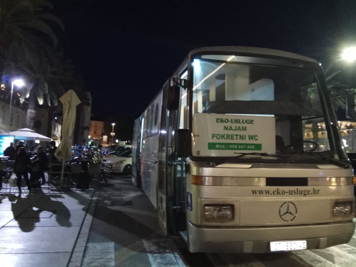Približavanjem Uskrsa turistička sezona se u Splitu lagano zahuktava. Vidi se to po broju stranih turista, osobito u staroj gradskoj jezgri, a njihov broj rast će iz tjedna u tjedan. Nedovoljnom broju kemijskih WC-a doskočila je splitska tvrtka "Eko usluge" koja ja rekonstruirala putnički autobus i prenamjenom napravila pokretni toalet imena "Buseko". Jučer je mnoge Splićane iznenadio prizor na Rivi, gdje je bio parkiran ovaj posebni autobus. Inače, u vrijeme dok je autobus bio parkiran u Dioklecijalnovim podrumima u tijeku su bila dva događaja s većim brojem sudionika.