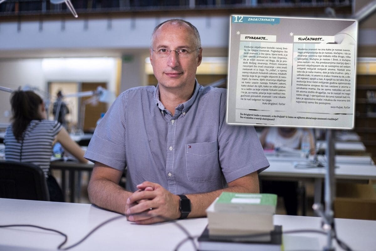 "Podloga je ova stranica iz udžbenika, na kojoj se Vuko i ja ne slažemo oko konceptualno-apstraktnih ideja o postanku svemira.
