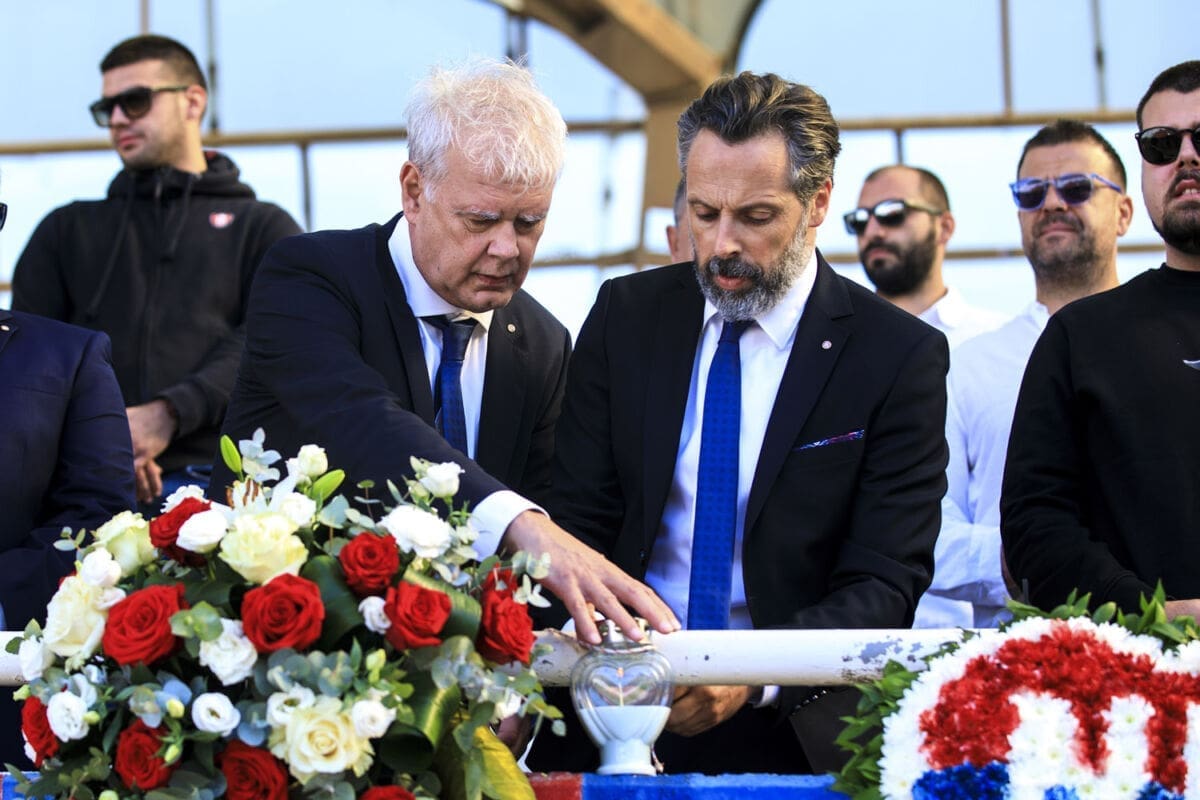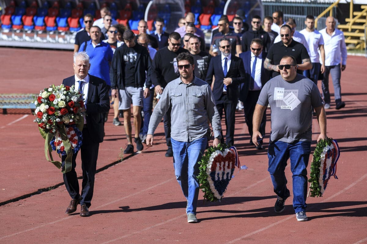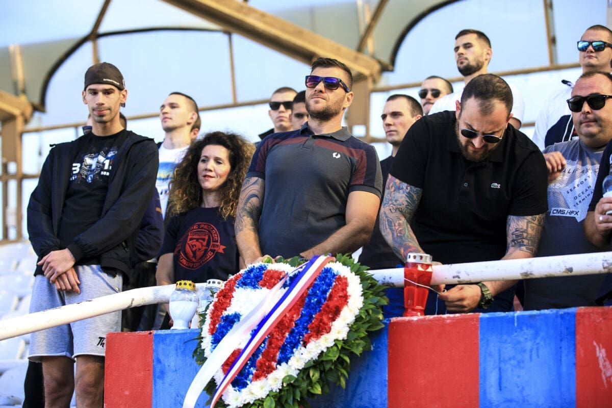 Polaganju vijenaca prisustvovao je i Branimir Žuvela, sin pokojnog Vjenceslava Žuvele, jednog od osnivača navijačke skupine Torcida.