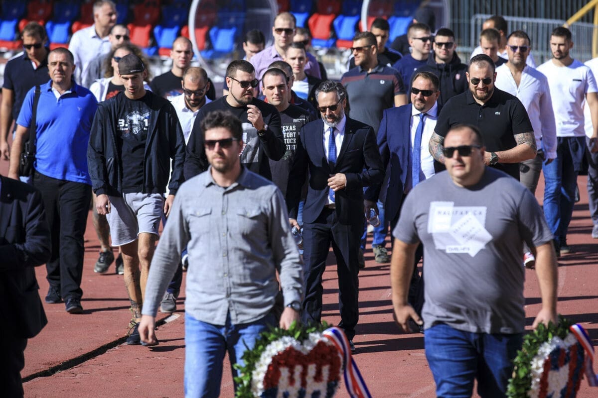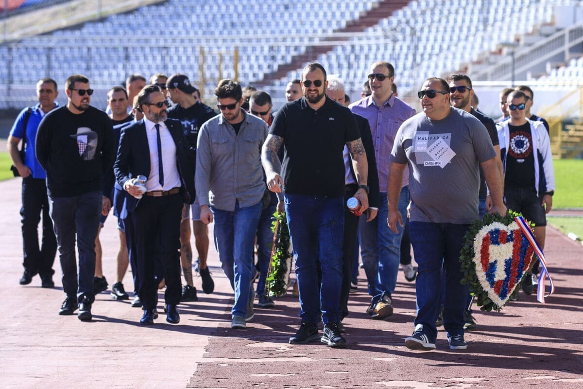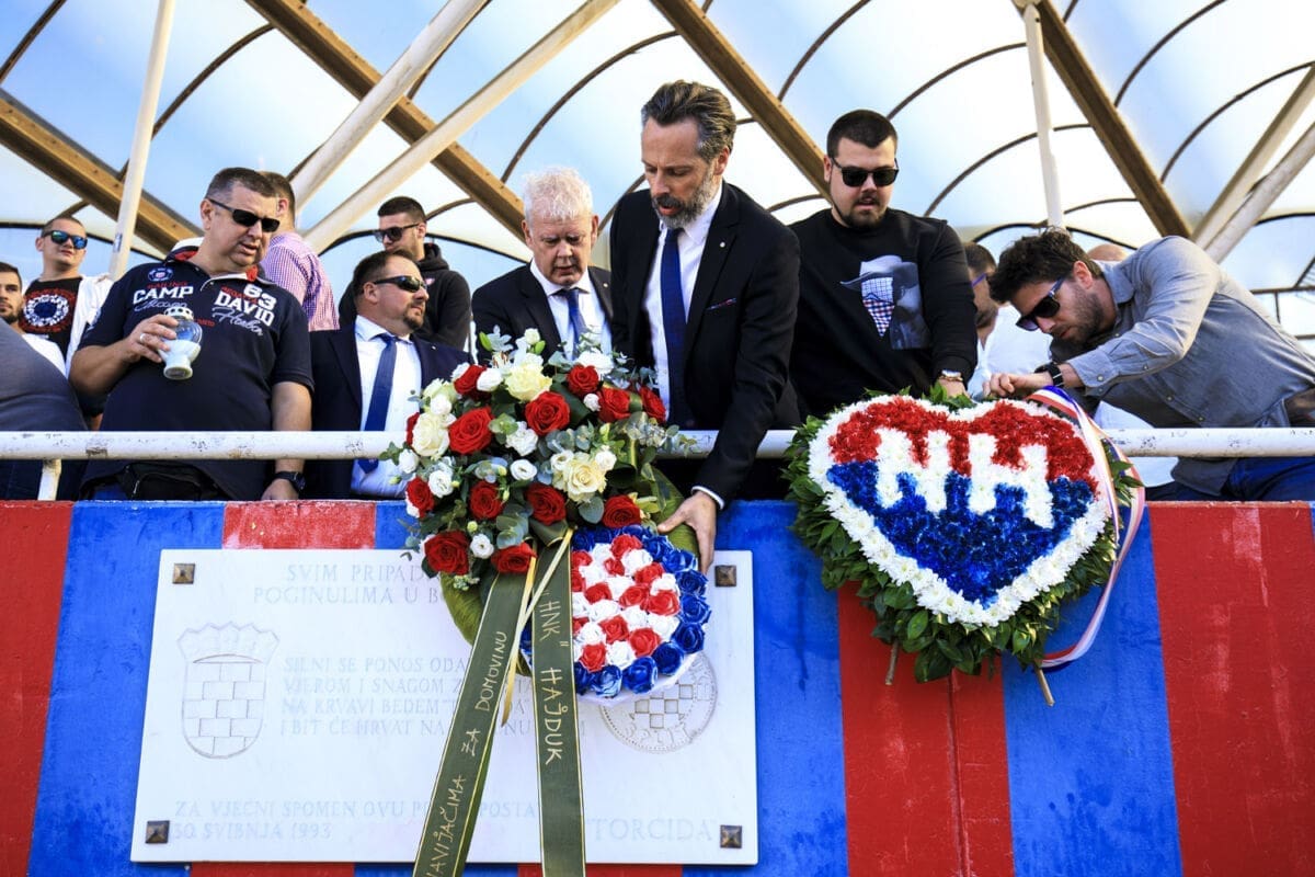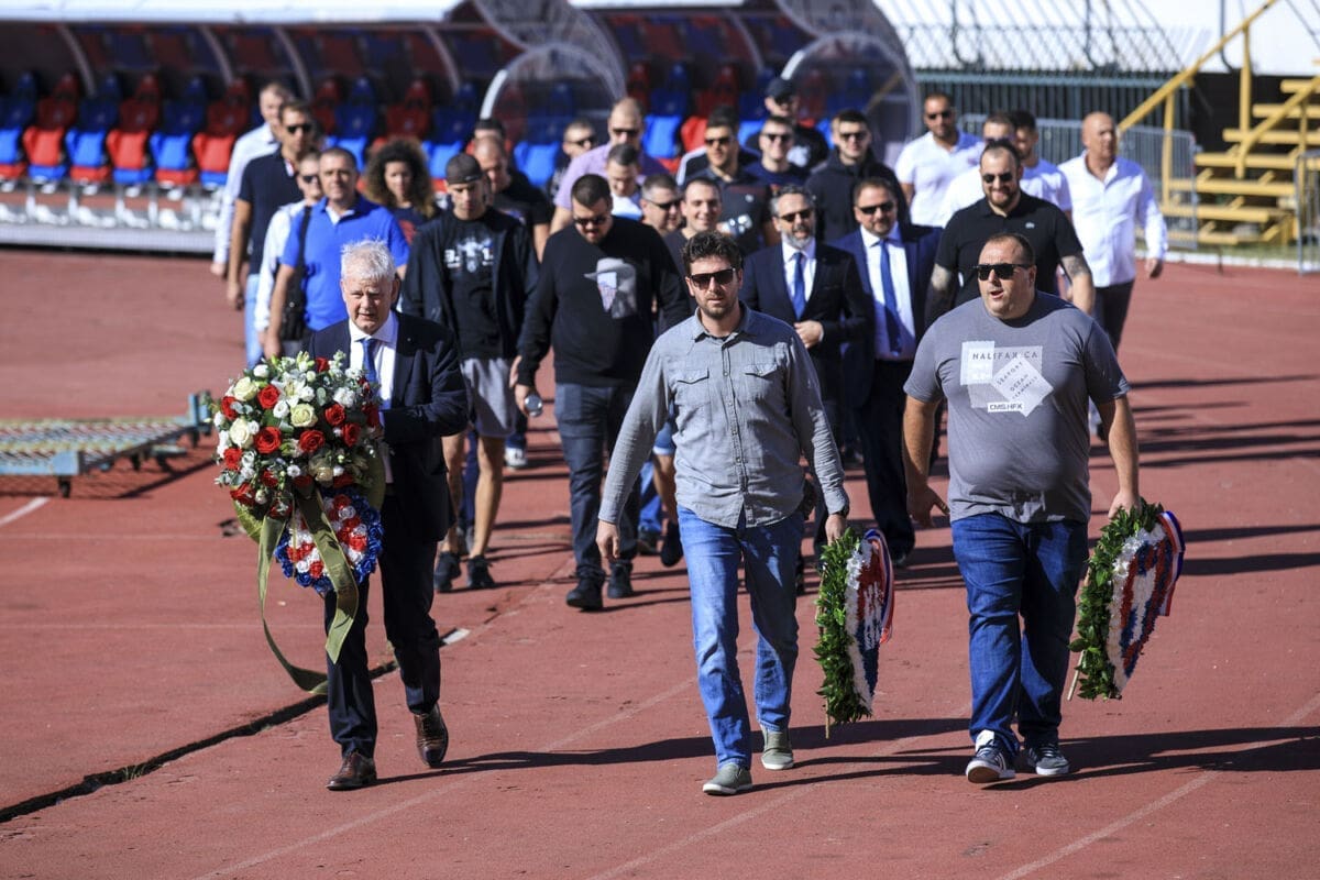 Polaganju vijenaca prisustvovao je i Branimir Žuvela, sin pokojnog Vjenceslava Žuvele, jednog od osnivača navijačke skupine Torcida.