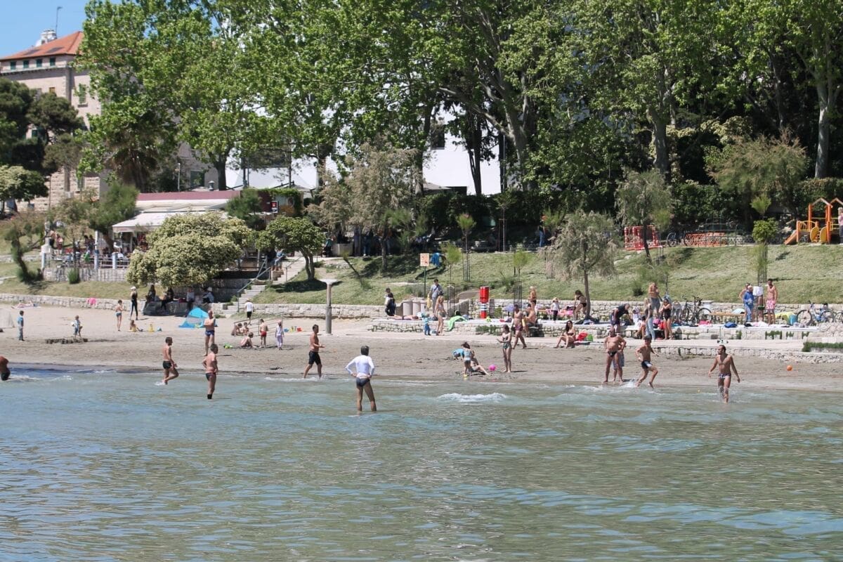 U plićaku Bačvica more je danju bilo znatno toplije, čak i preko 20 stupnjeva, no takva temperatura nije reprezentativna. Bačvice su u nedjelju bile pune posjetitelja - neki su se samo sunčali, neki igrali picigin i balun, a neki su se i okupali.