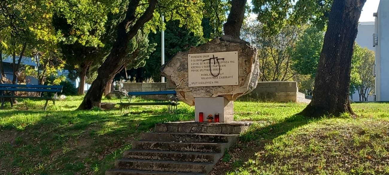 "Poneseni snom o slobodi s ovog su mjesta 11. kolovoza 1941. krenuli u borbu partizani Prvog splitskog odreda. Rodoljubivi Split nikada ih neće zaboraviti."
