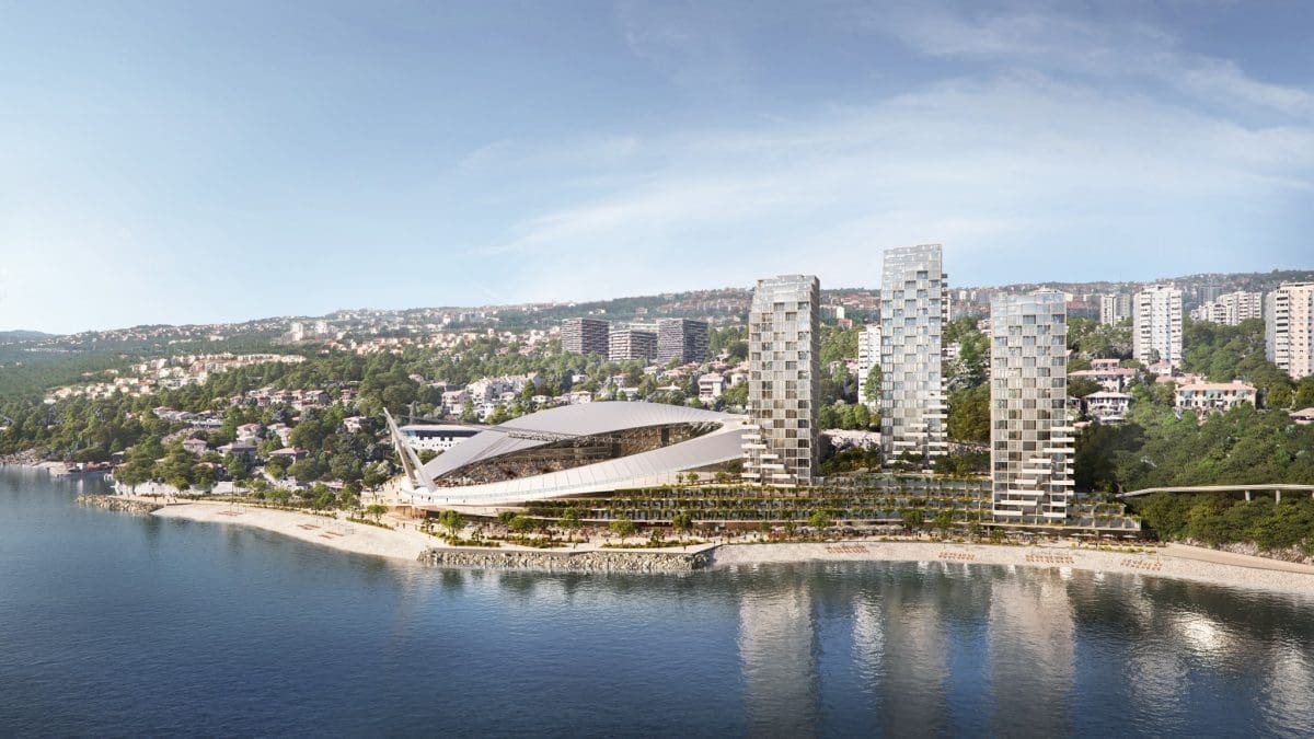 Treće: TRI NEBODERA, svaki s visinom od 116 metara, čijom izgradnjom se Rijeka, u arhitektonskom i urbanističkom aspektu, približava gradovima koji se s ovakvim rješenjima opravdano smatraju najljepšima i najkvalitetnijima za život. Visoki neboderi, neposredno uz prvu liniju do mora, obilježja su Barcelone, Dubaija, Miamija i sličnih urbanih središta koja svojom inovativnošću, s modernim, hrabrim iskoracima, ostavljaju bez daha. Neboderi su, uostalom, jedna od asocijacija na Rijeku. Sinonim Rijeke je – neboder. Neboder, u svakom dijelu grada. To je karakteristika Rijeke. Uz to, takve, visoke stambene građevine, u neposrednoj su blizini lokacije stadiona, i to sa sjeverne, zapadne i istočne strane. Tri planirana nebodera, direktno spojena s hotelom, imat će 35 kata, dio su iste ili slične priče.
