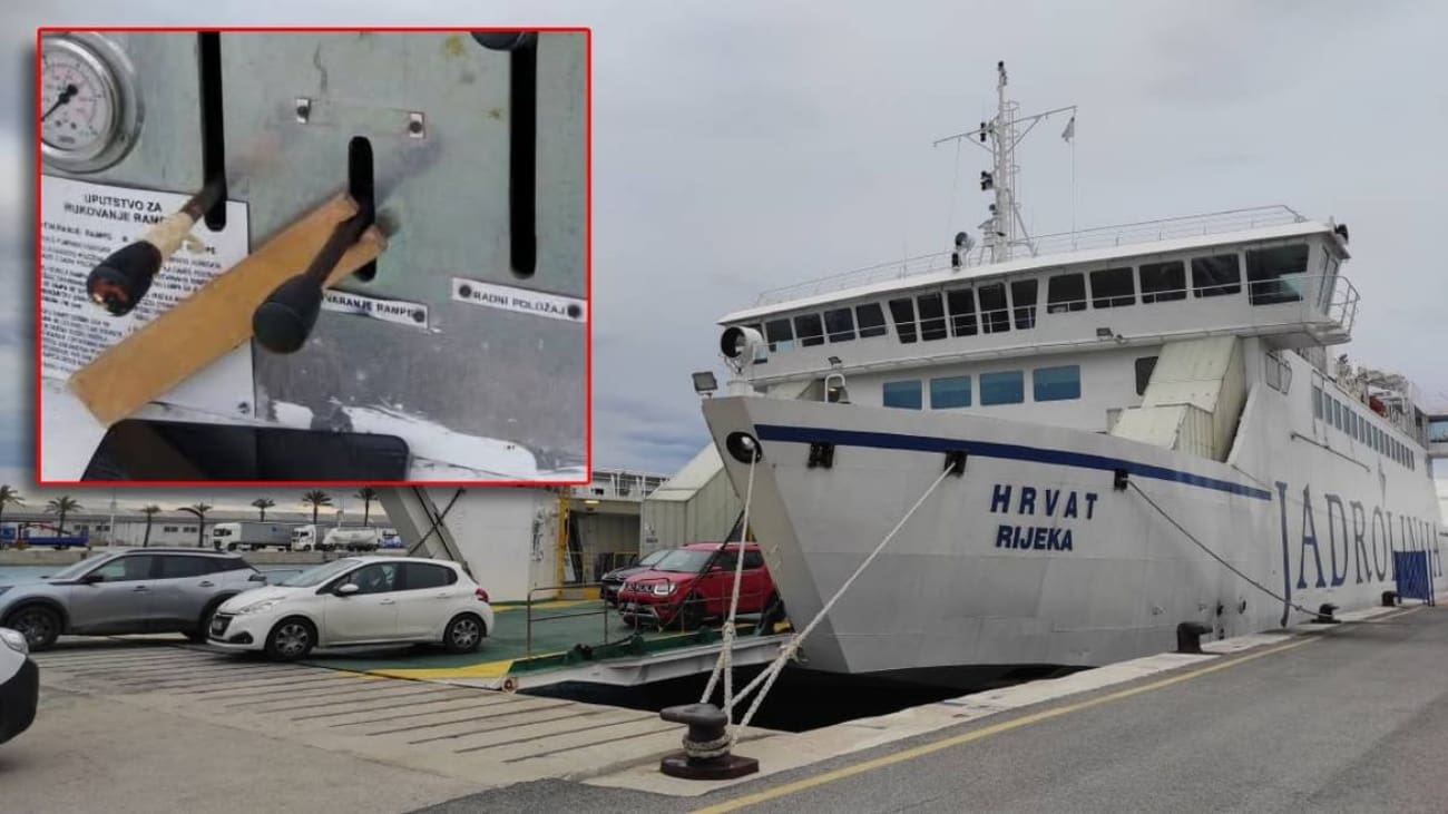 Prilično neobičnu scenu snimio je jučer putnik na trajektu Hrvat koji je plovio na liniji Split - Supetar na Braču. Daščica, čini se, za ovu situaciju prikladno i izrađena, koja pridržava polugu za otvaranje rampe tamo prema sigurnosnom protokolu ne bi smjela biti, piše Morski.hr.