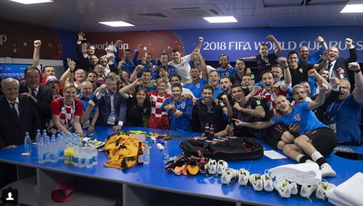 Hrvatska predsjednica nakon pobjede Hrvatske protiv Rusije posjetila je naše reprezentativce koji su slavili. Pjeavali su "Zovi, samo zovi", a ona je pjevala s njima.