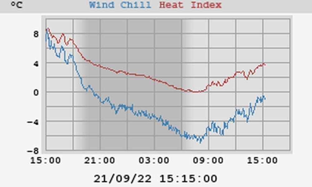 Najhladnije je ipak bilo na Dinari, postaja na planinarskom skloništu Pume ispod Velike Duvjakuše danas je mjerilo 0°C, a osjet hladnoće zbog bure padao je do -7°C.
