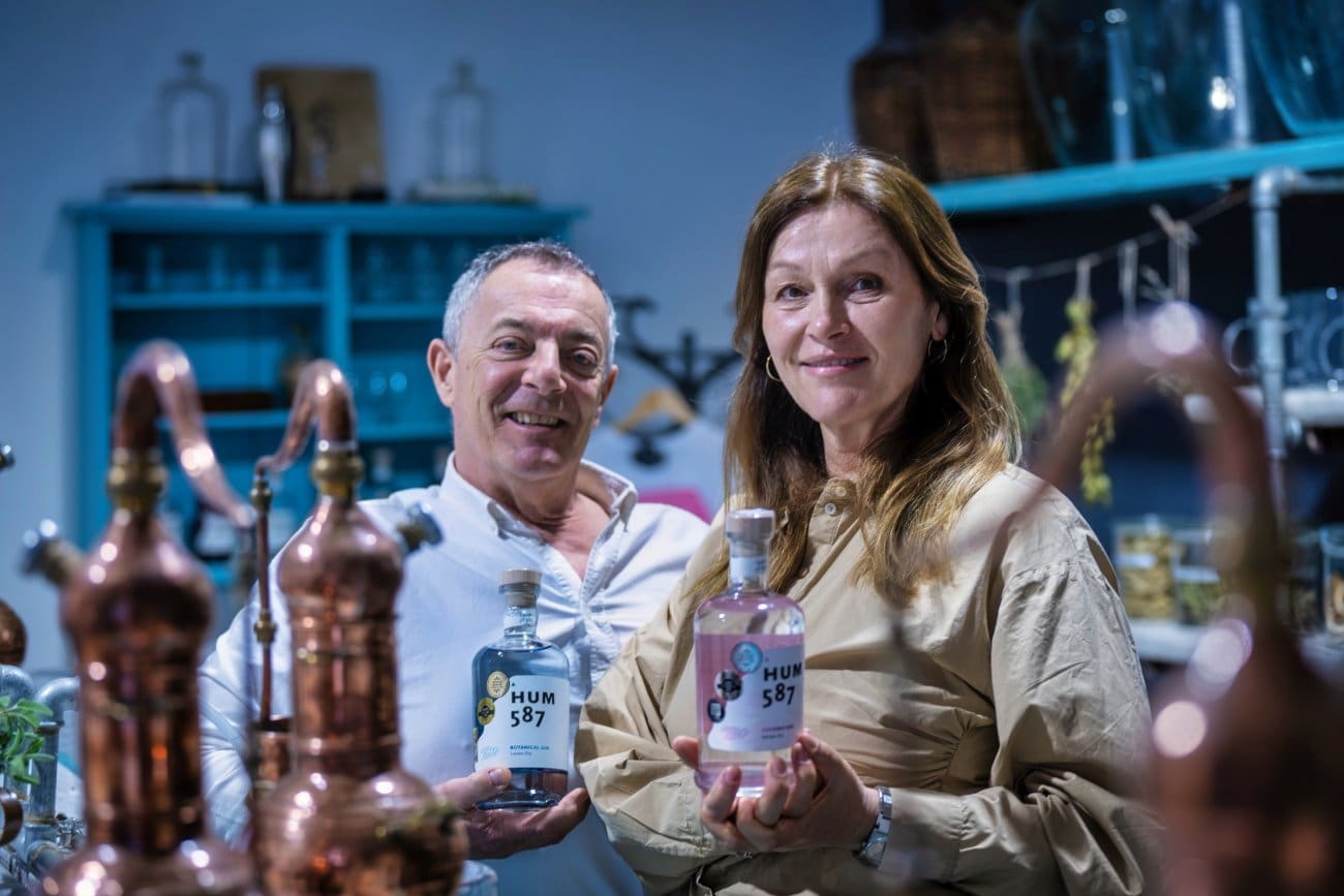 Njihov gin nosi ime po najvišem vrhu Visa – Humu (587 metara), mjestu gdje beru dio biljaka koje koriste u proizvodnji. “Htjeli smo napraviti nešto što će stvarno predstavljati otok. Ne samo piće, nego doživljaj – kao da si Vis stavio u bocu.” U proizvodnji koriste isključivo lokalne sastojke, uključujući i limune koje beru zimi. “Limune beremo krajem prosinca i početkom siječnja, gulimo ih, sušimo koru i koristimo u destilaciji. Sve radimo ručno”, objašnjavaju. Njihov osnovni gin sadrži čak 13 biljaka, a razvili su i više varijacija, od klasičnih do onih s izraženijim citrusnim i floralnim notama.