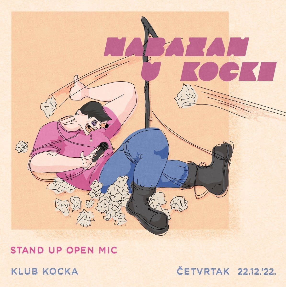 U četvrtak, 22. prosinca 2022. u 20 sati, u organizaciji "Splicke Scene", "Ubijmo dosadu" dovodi stand up u Kocku.