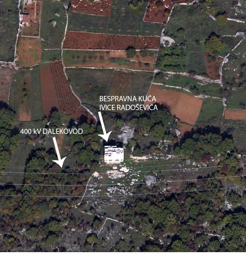 Ovaj članak ne bi bio potpun kad se ne bi dotakao još apsurdnijih dijelova ove cijele priče. Naime, Ivica Radošević – vijećnik HSP-a, je izgradio svoj bespravni objekt u neposrednoj blizini ovog istog dalekovoda, a isti objekt je prema vlastitim riječima namijenio za starački dom – također dio populacije na koji se odnose vrijednosti Pravilnika za područja s povećanom osjetljivosti (slika 1).