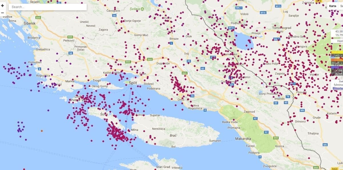 ... a gdje su točno munje udarale na širem splitskom područje pogledajte ovdje: