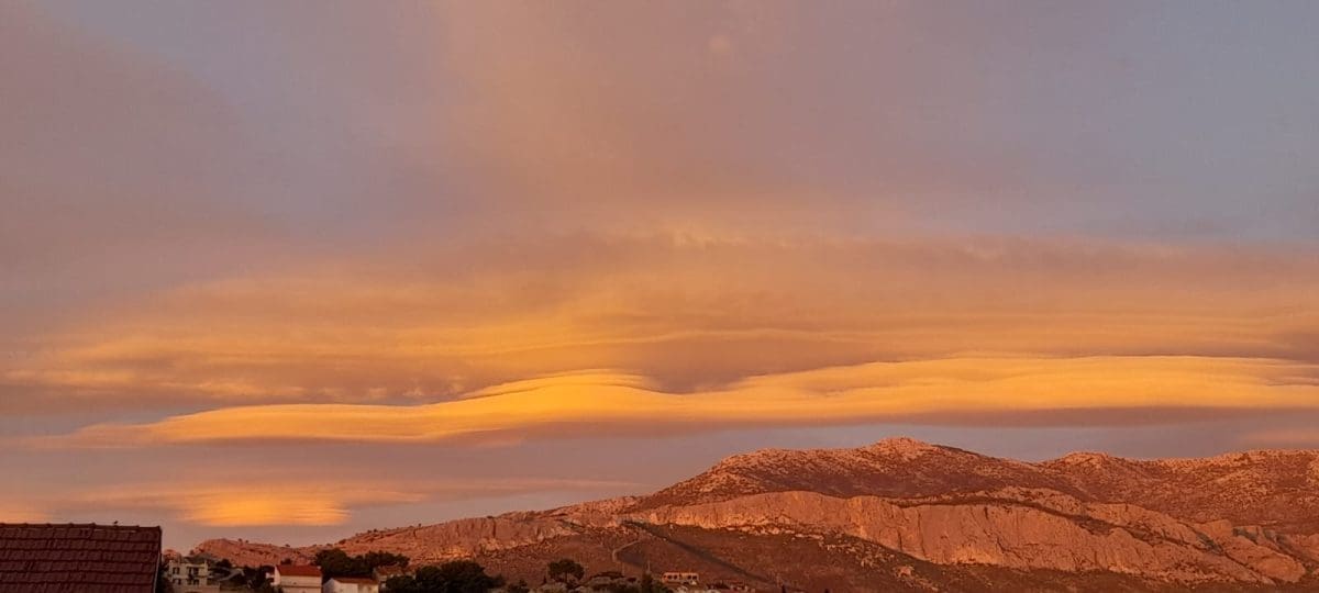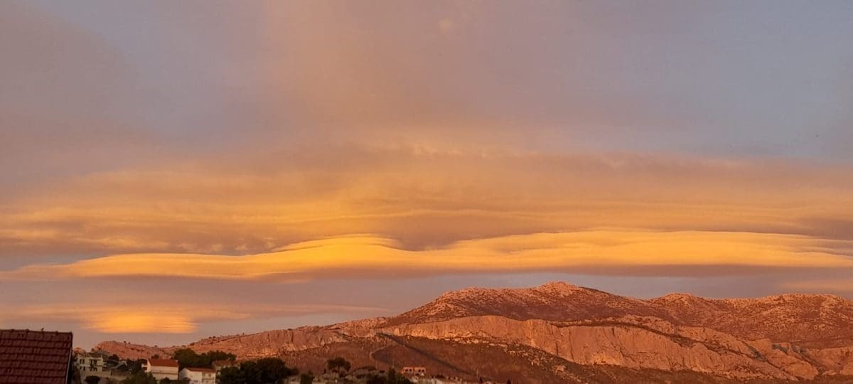 Iznad Mosora se u predvečernjim satima stvorio lentikularis, odnosno lećasti oblak. On nastaje u onom trenutku kada vjetar naiđe na planinsku prepreku. Često ovakvi oblaci podsjećaju na pojavu NLO-a jer su lećastog oblika.