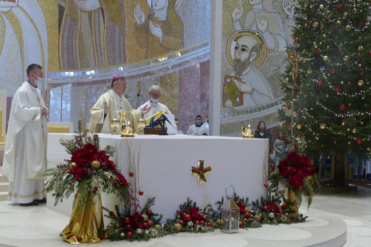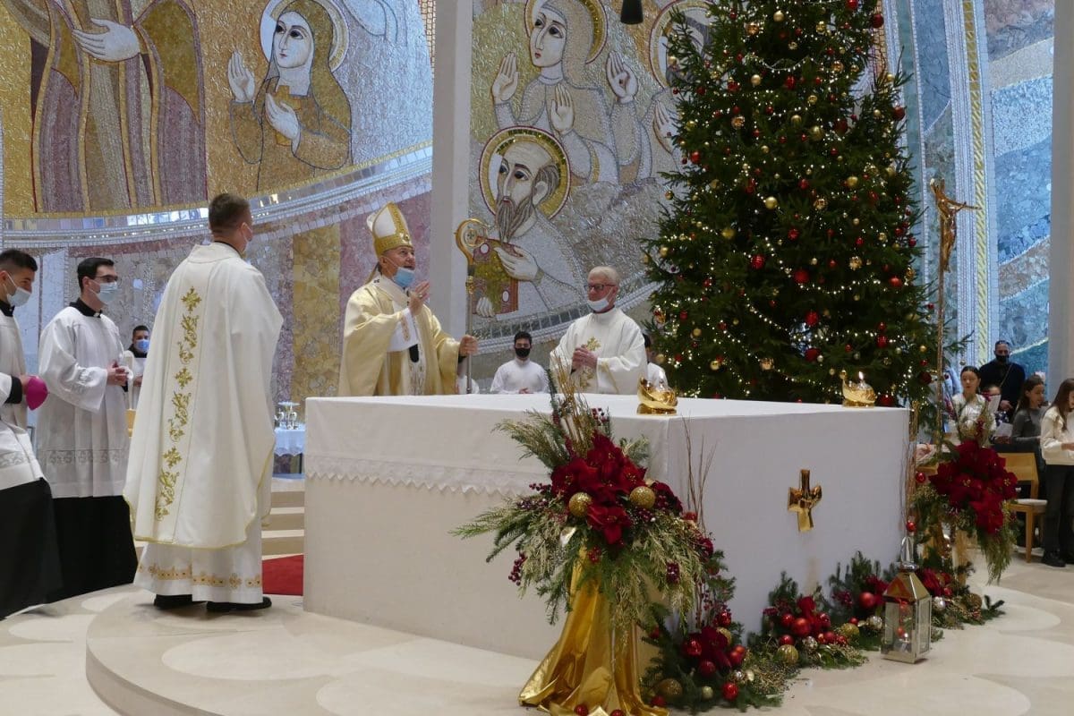 Splitsko-makarski nadbiskup Marin Barišić na blagdan Svete obitelji u nedjelju 26. prosinca predvodio je misno slavlje u lijepo okićenoj crkvi Svete Obitelji u Solinu. U koncelebraciji su bili: župnik don Ante Čotić, kapelan don Roko Kaštelan i nadbiskupov tajnik don Nikola Šakić.
