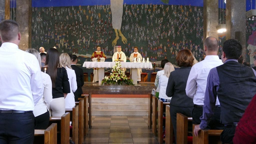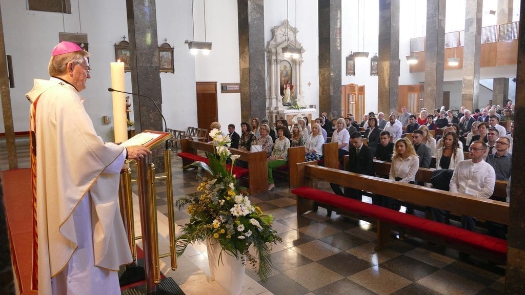 Pozdravivši sve nazočne, župnik fra Ante Udovičić naglasio je da su se katekumeni više mjeseci pripremali za ovaj dan kada će primiti sakramente kršćanske inicijacije krštenje, prvu pričest i potvrdu s kojima ulaze u potpuno zajedništvo s Katoličkom Crkvom, zaručnicom Kristovom, a time postaju udovi jednoga otajstvenog Tijela kojemu je glava Krist. Nadbiskup Barišić je u uvodu istaknuo kako je ovaj veliki događaj zajednička radost za cijelu Crkvu te je zahvalio svima koji su krizmanike pratili na njihovu putu vjere: kumovima, roditeljima i prijateljima, osobito Gospodinu Isusu Kristu koji ih je sustigao na njihovu životnom putu kako bi ga korigirao i nastavio hoditi s njima.