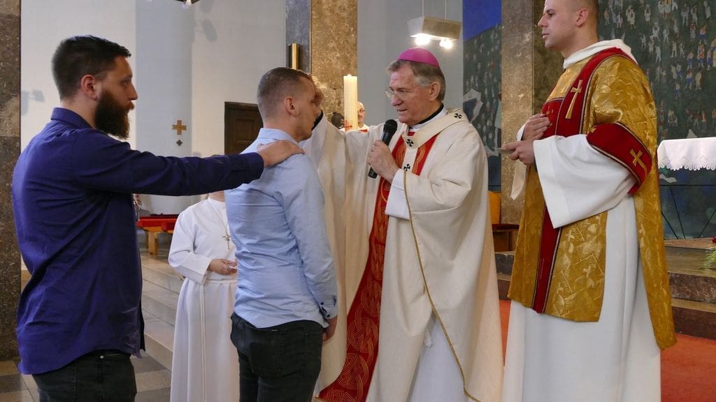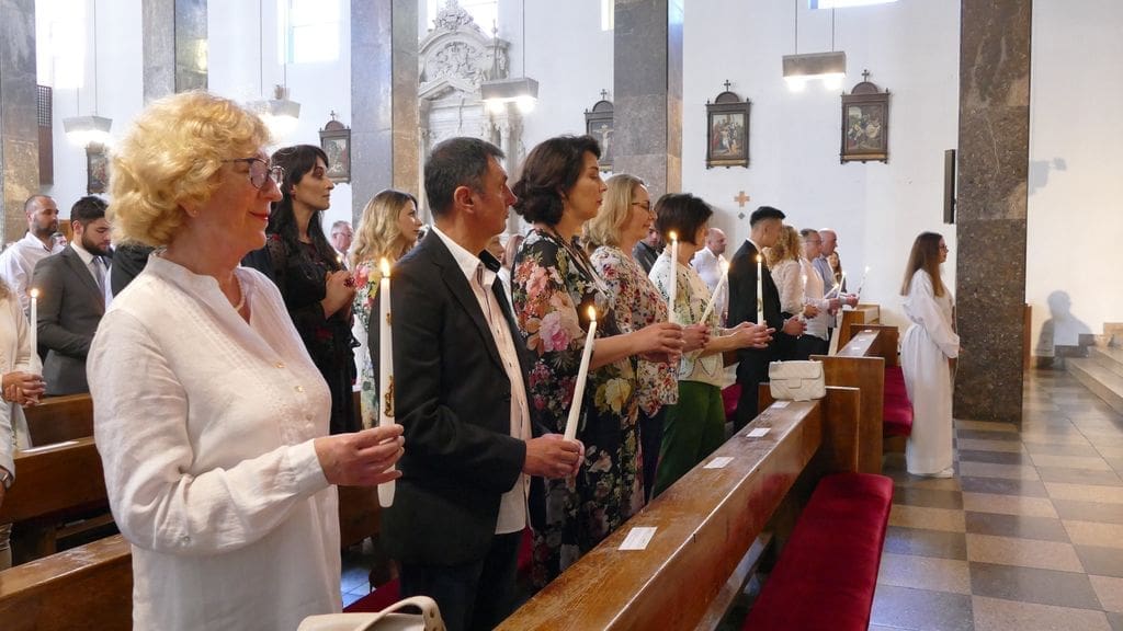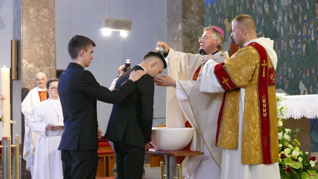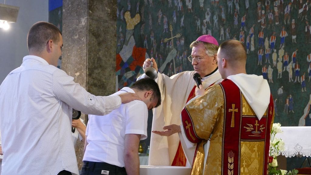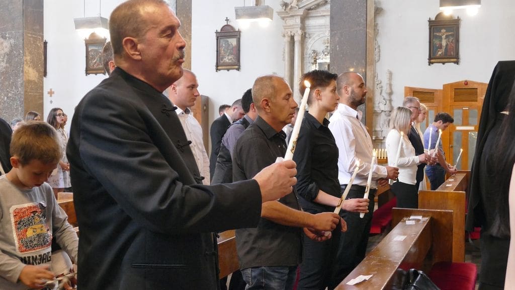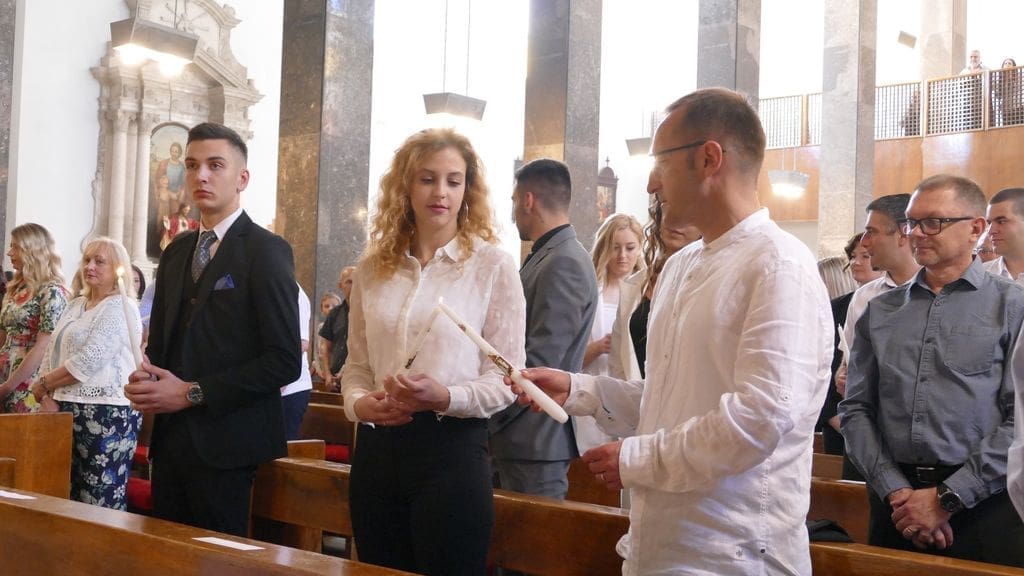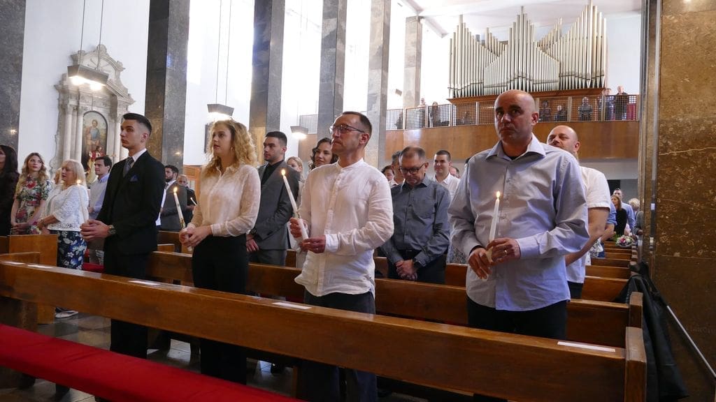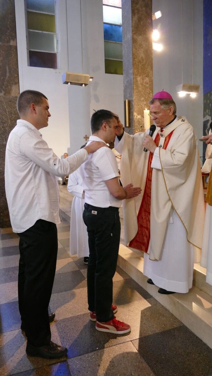 Nakon propovijedi nadbiskup je podijelio sakramente kršćanske inicijacije. Na kraju misnoga slavlja riječ zahvale nadbiskupu i čestitke slavljenicima i kumovima uputio je župnik fra Ante, pozvavši katekumene na molitvene susrete koji će se nastaviti za njih održavati u crkvi Gospe od Zdravlja.