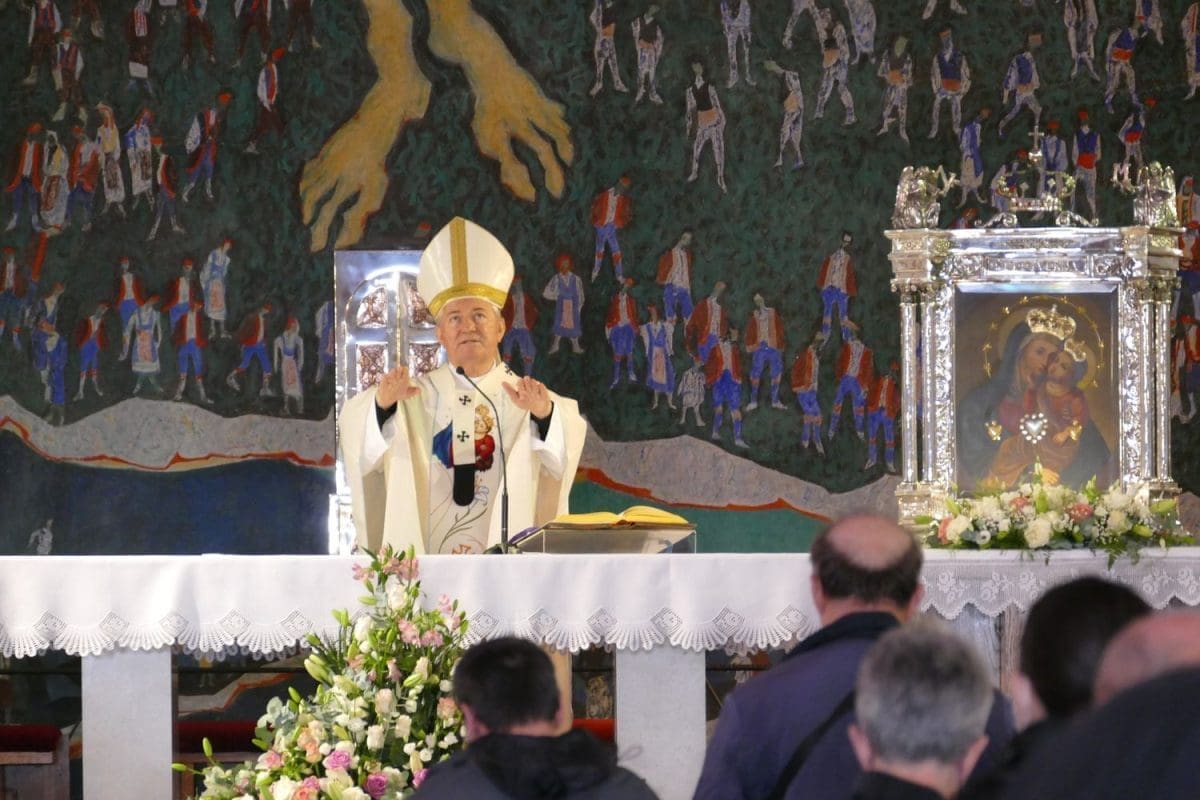 Na početku euharistijskoga slavlja nadbiskup je pozvao vjernike da uđu u duhovnu blizinu s Majkom Marijom i s Kristom Kraljom, čiji blagdan danas obilježavamo. Krist je Kralj svega stvorenoga, ali prije svega kralj naših srdaca, kralj grešnika i pravednika, bolesnih i zdravih. Molimo ga da osposobi naša srca svojom milosnom ljubavlju da dostojno možemo slaviti sveta otajstva, kazao je nadbiskup uvodeći u misno slavlje.