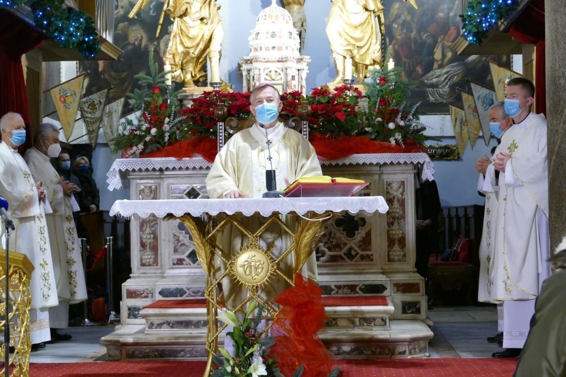 „Draga braćo i sestre, u ovoj svetoj i jedinstvenoj noći, nebeski glasnik donosi Radosnu vijest: 'Ne bojte se! Evo javljam vam blagovijest, veliku radost za sav narod! ... Rodio vam se Spasitelj - Krist Gospodin! I evo vam znaka, naći ćete novorođenče povijeno gdje leži u jaslama' (Lk 2, 10-12). Ova Radosna vijest upravljena je u noći betlehemskim pastirima i svima nama danas. Ona povezuje nebo i zemlju. Iz vječnosti ulazi u vremenitost“, kazao je splitsko-makarski nadbiskup i metropolit Marin Barišić predvodeći misu polnoćku 24. prosinca u splitskoj prvostolnici Sv. Dujma.
