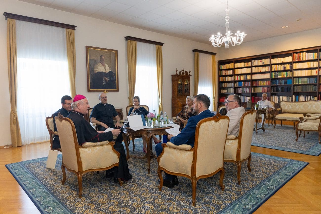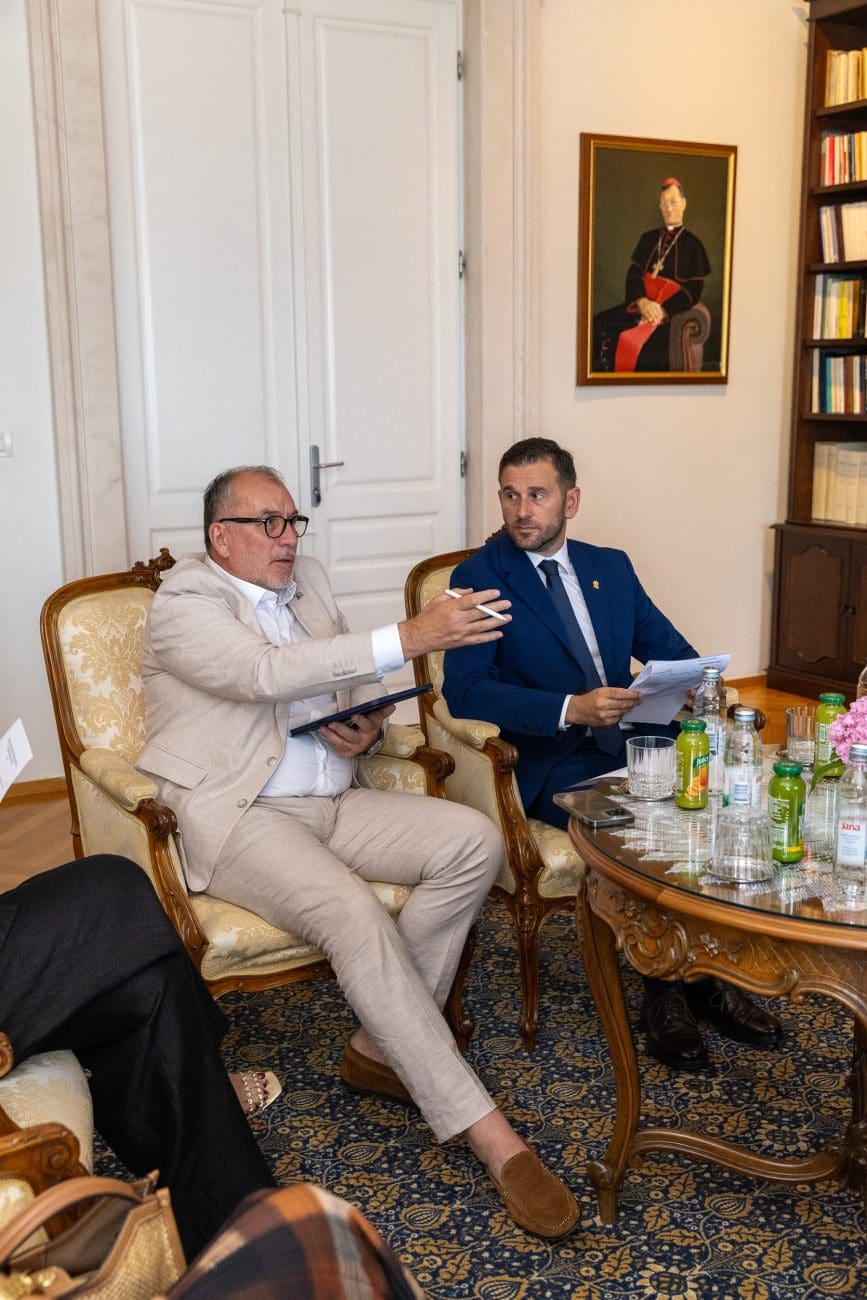 Nadbiskup je ovom prigodom čestitao novoizabranome gradonačelniku i poželio mu obilje Božjega blagoslova i uspjeh u radu te izrazio nadu u plodnu suradnju. Gradonačelnik je nadbiskupu zahvalio na gostoprimstvu, lijepim riječima i iskazanoj dobroj volji za suradnju s Gradom u odnosu na zajednička pitanja. U nastavku susreta razgovaralo se o suradnji Splitsko-makarske nadbiskupije i grada Splita.
