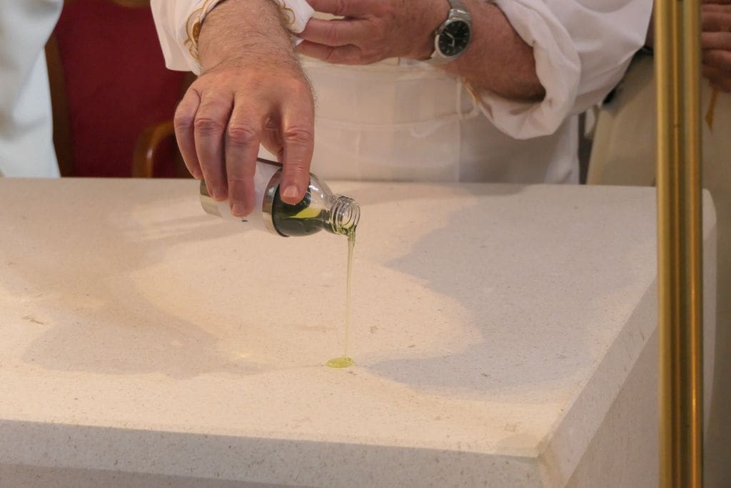 Prije početka svete mise student teologije Toni Krolo je uveo prisutno mnoštvo u otajstveno značenje posvete crkve i oltara. Naglasio je da se obred posvete crkve i oltara ubraja među najsvečanije liturgijske čine. Svaka crkva je vidljivi znak zemaljske putujuće Crkve, ali ujedno i slika nebeske Crkve. Središnje i najsvetije mjesto u crkvi je upravo oltar koji predstavlja samoga Krista. Svećenik svaku svetu misu počinje i završava poljupcem oltara, odnosno na simboličan način on ljubi samoga Krista i to radi u ime cijele zajednice.