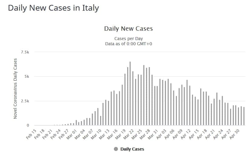Dobre vijesti stižu iz susjedne Italije. Posljednja 24 sata tamo je zabilježeno 1.139 novozaraženih, oko 800 manje nego jučer. To je najmanji broj novozaraženih od 10. ožujka. Od posljedica koronavirusa evidentirano je 174 smrtnih slučajeva, čak 300 manje nego jučer! Ozbiljno narušenog zdravlja ili u kritičnom stanju je 2.386 osoba. U Italiji je trenutno 73.300 aktivnih slučajeva, a broj ozdravljenih je 81.854. U Italiji je od početka epidemije umrlo 28.884 ljudi.