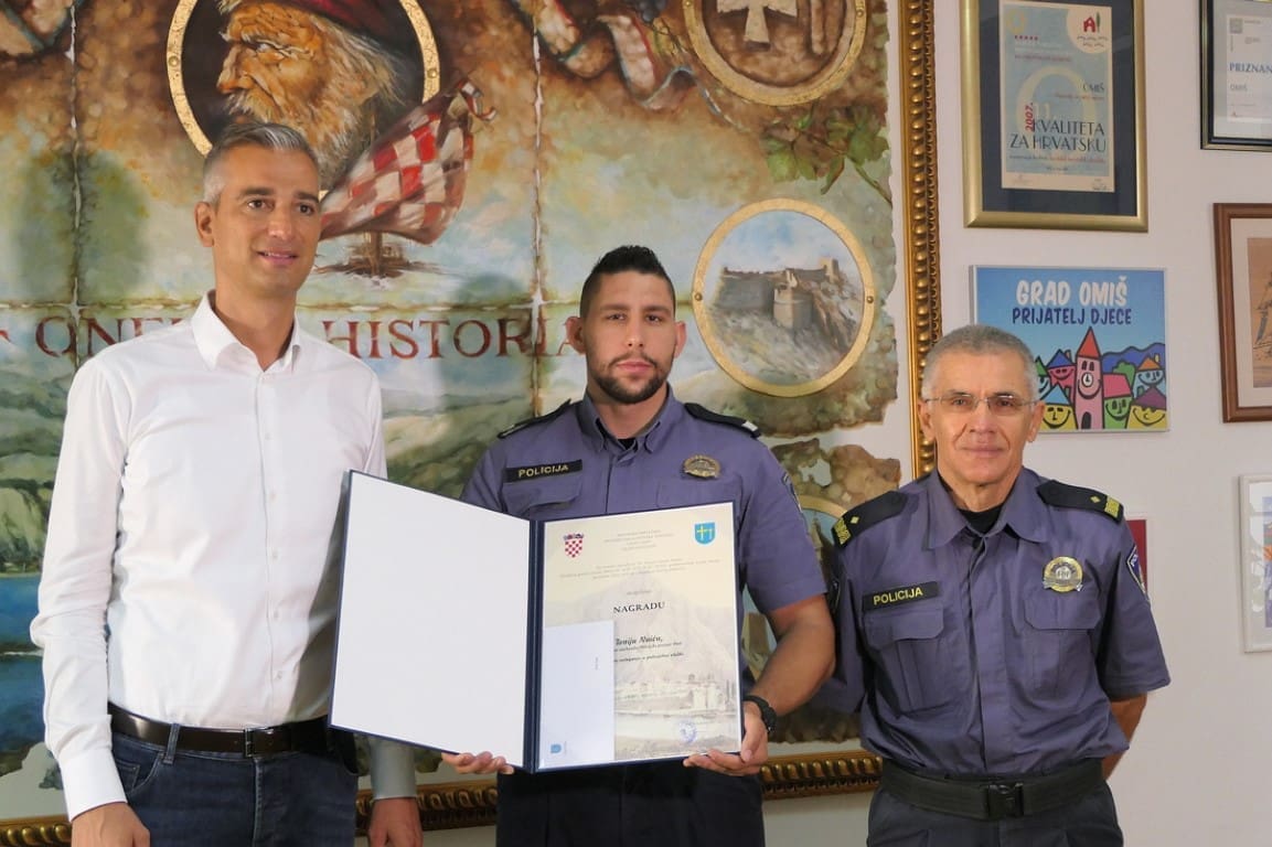 Povodom jučerašnjeg Dana policije gradonačelnik Grada Omiša Ivo Tomasović uz prisustvo pomoćnika načelnika Policijske postaje Omiš Branka Barišića svečano je godišnju nagradu za najboljeg policajca ovog grada dodijelio Toniju Nuiću.