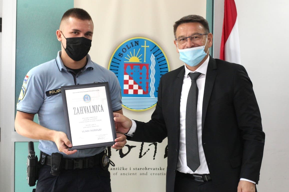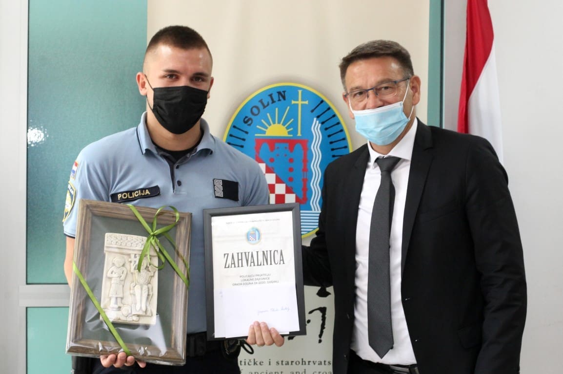 Uručujući nagradu i čestitajući nagrađenom službeniku Vladi Rubelju, a kojem uz priznanje za najboljeg policajca grada Solina prati i simbolična novčana nagrada u iznosu od 2500 kuna, solinski gradonačelnik Dalibor Ninčević se zahvalio PP Solin na suradnji tijekom cijele godine, posebno u ovo vrijeme pandemije koronavirusa – Grad i Policijska postaja Solin imaju svakodnevnu suradnju što pridonosi i uspješnoj organizaciji kulturnih, sportskih i inih događanja pa tako i Dana grada i blagdana Male Gospe – rekao je gradonačelnik Ninčević dodavši kako je koordinacija uspješna i zbog kvalitetnog rada Vijeća za prevenciju kriminaliteta grada Solina, koja redovito prati stanje sigurnosti na području grada. Gradonačelnik Ninčević je prilikom obraćanja naglasio i obnova zgrade PP Solin u kojoj grad Solin novčano sudjelovati i u uređenju interijera.